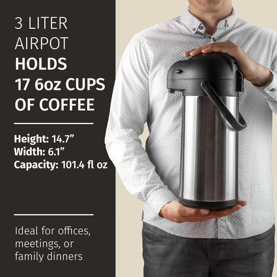 Coffee Carafe with Pump - 102oz / 3L Air pot 12 Hours Large Carafe Hot Cocoa Dispenser for Parties-Hot Water Dispenser, Tea Flask-Insulated Stainless Steel Hot Beverage Dispenser-Thermal Carafe Air Pot