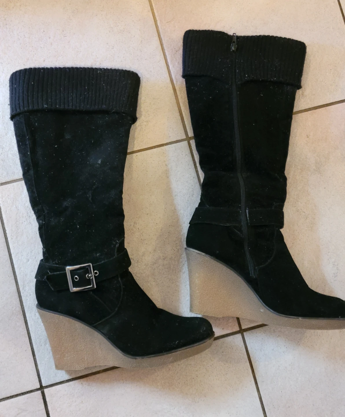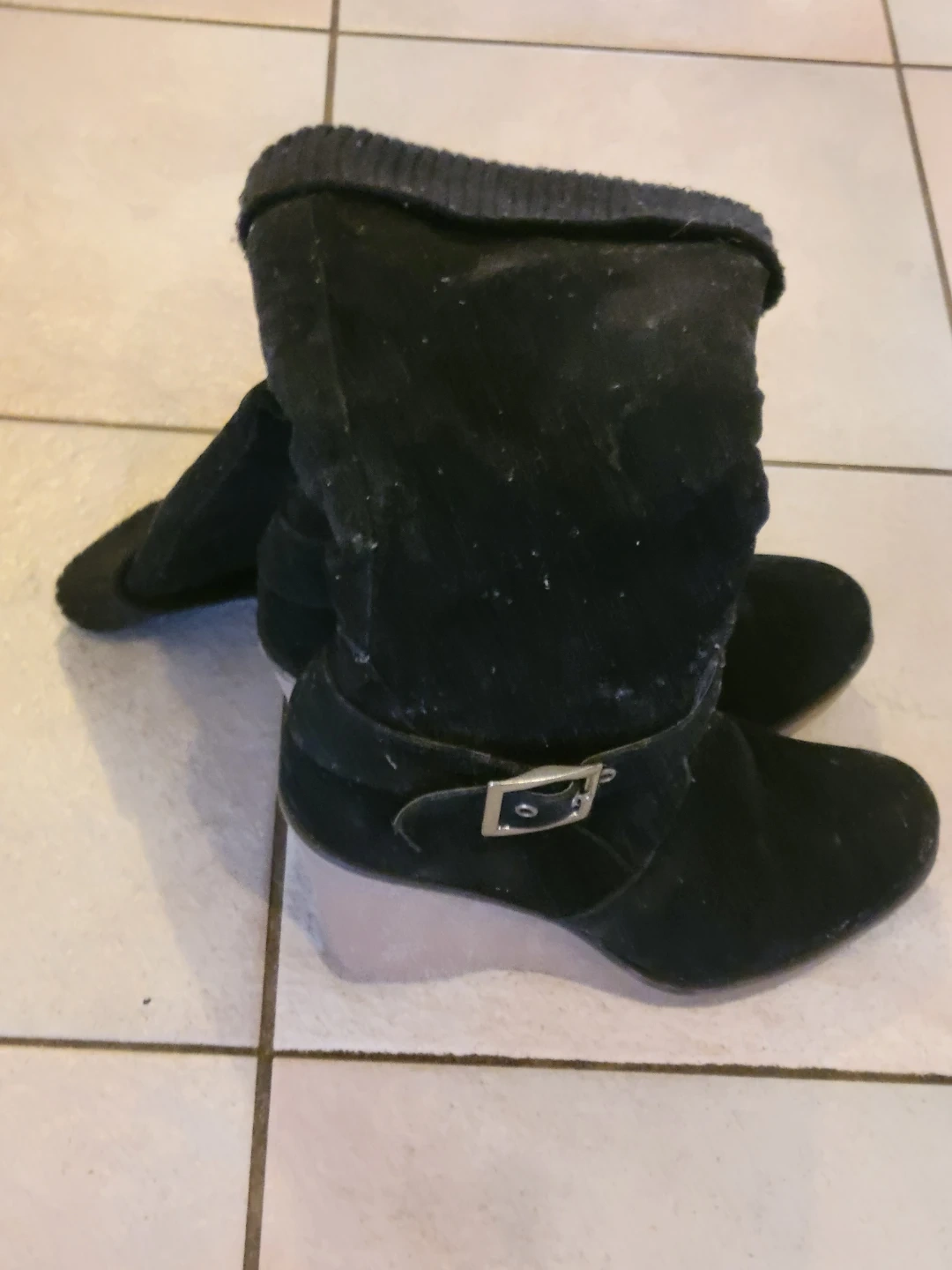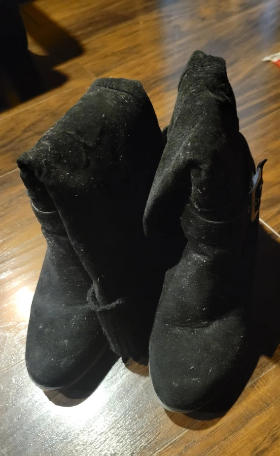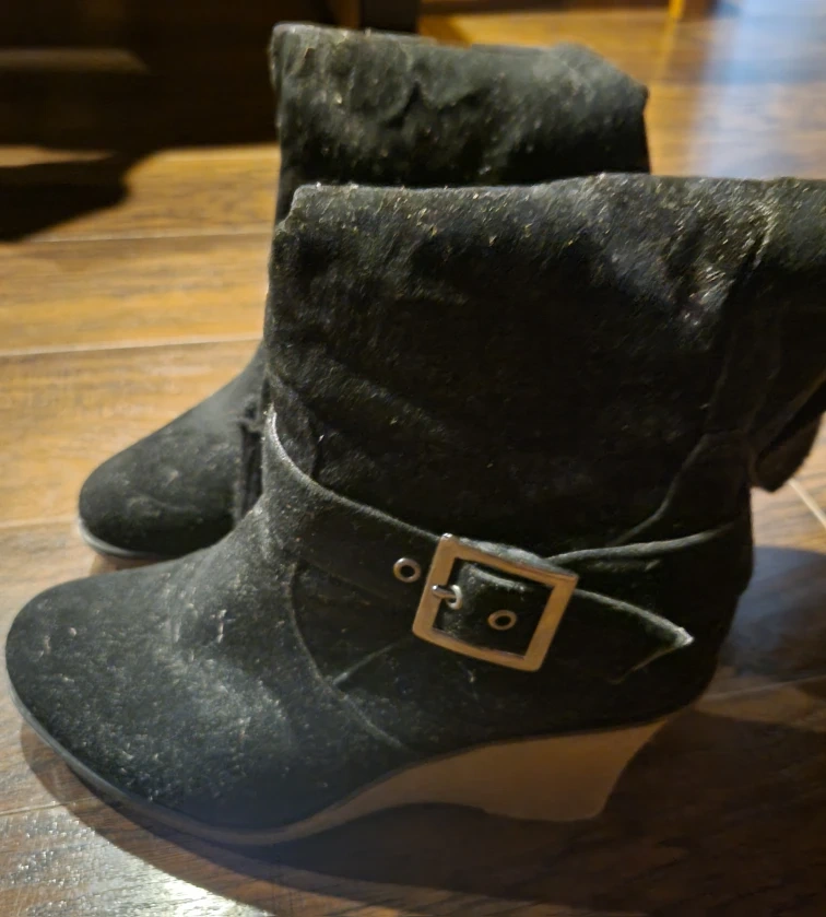 Buy & SellBlack Wedge Heel BootsBlack Wedge Heel Boots$5These are a pair of black wedge heel boots. They are in good condition. They have a buckle detail and a wedge heel. Perfect for fall!Size9WHERE TO MEETCheck LocationView MapSELLERverifiedArenTam O'Shanter17510 reviews1 chats·1 favorites·20 viewsSEND CHAT TO SELLERHi Aren! I’m interested in your listing.Hi Aren! I’m interested in your listing.Get the Karrot app to chatSign In to chat