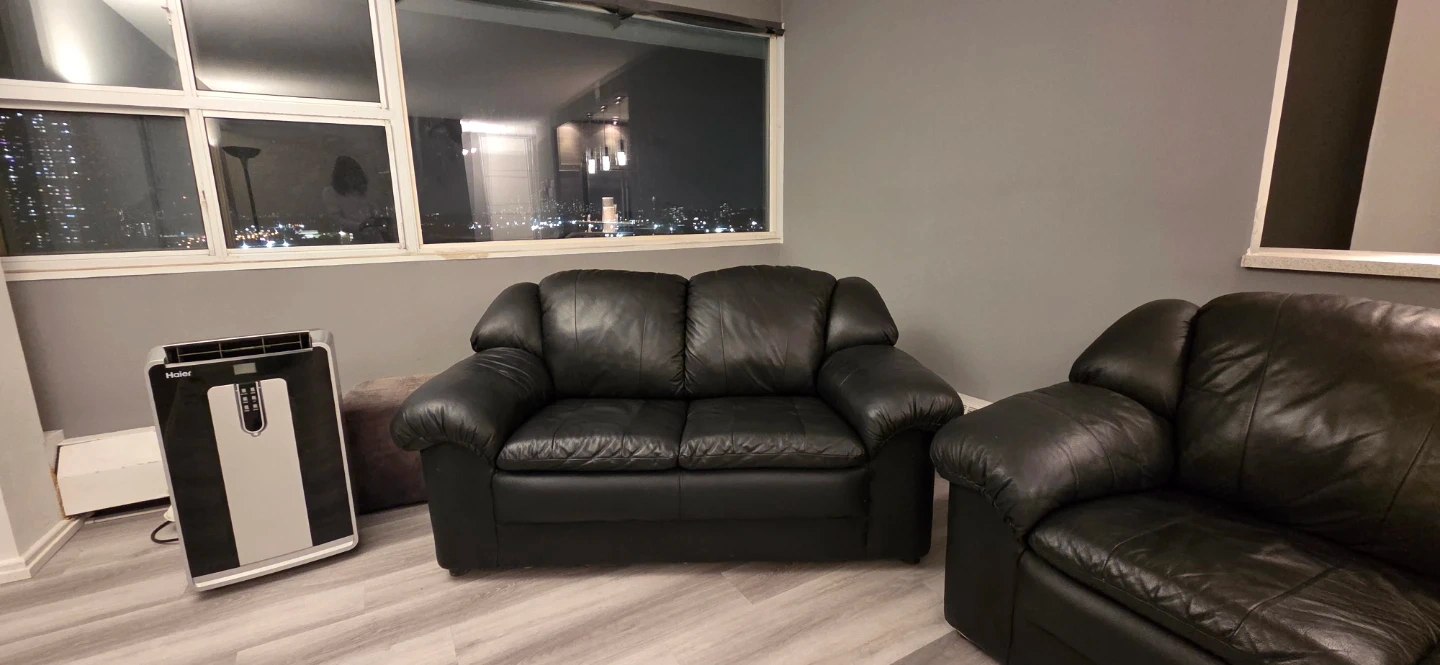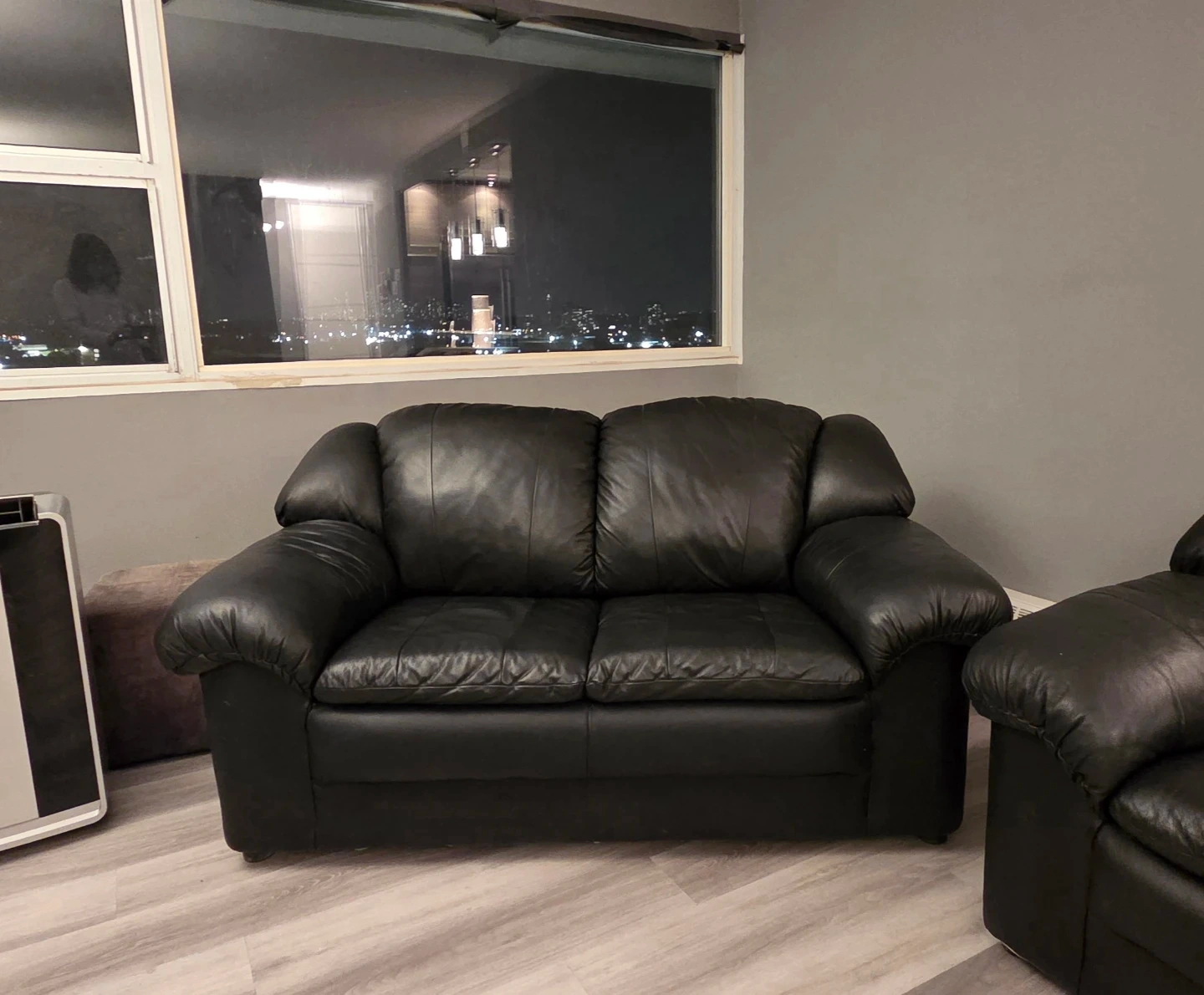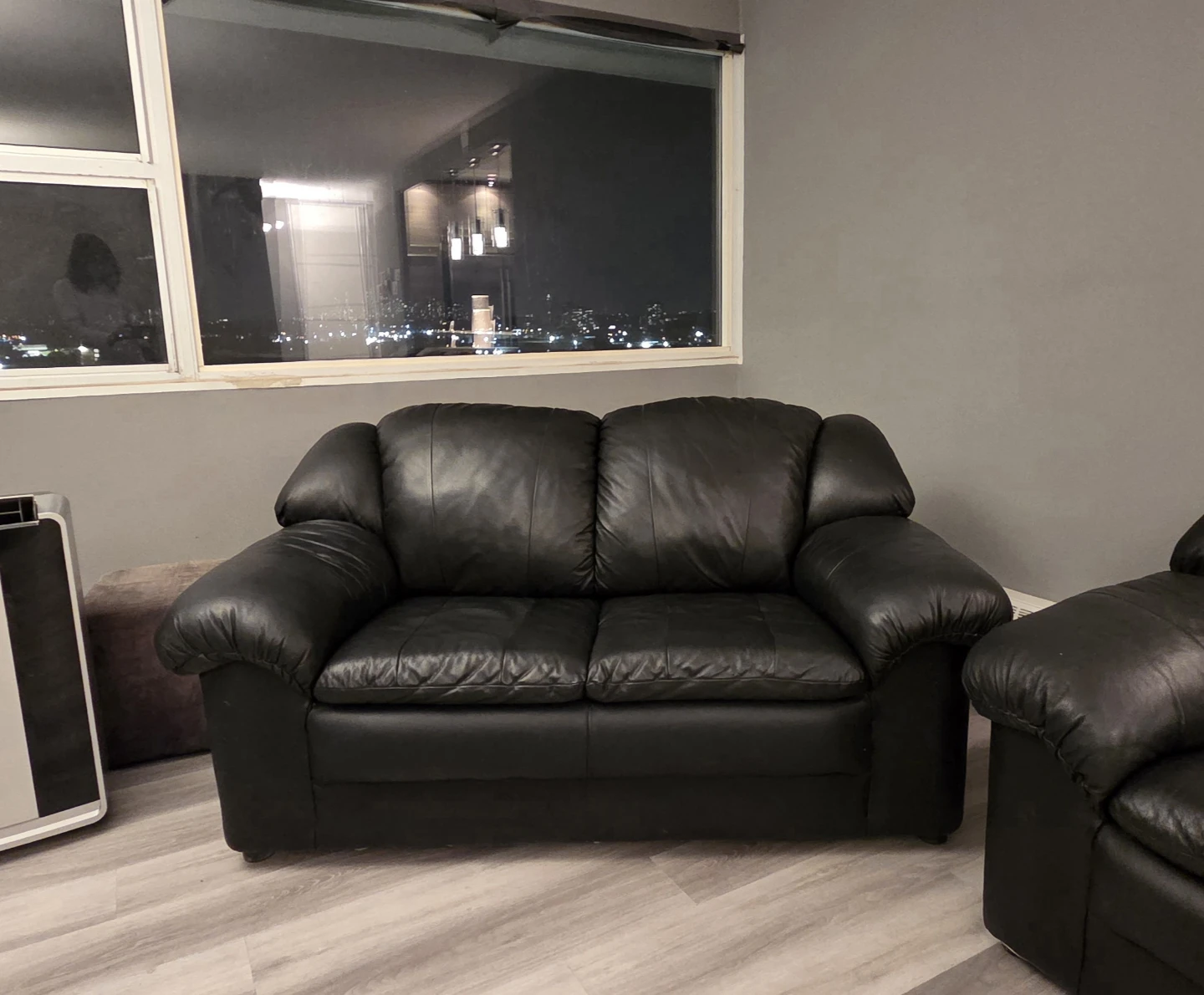 Here's a very comfortable Black Genuine Leather Loveseat with great back support.