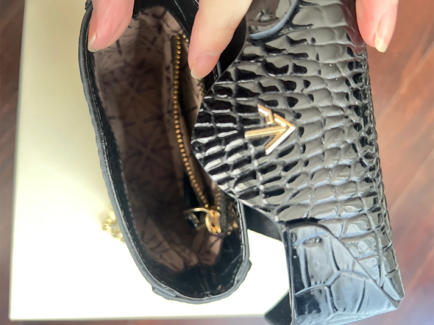Selling a stylish MANU Atelier mini cylinder bag in black croc. It's in great condition and comes with its original box. The bag features a distinctive design and is perfect for adding a touch of sophistication to any outfit