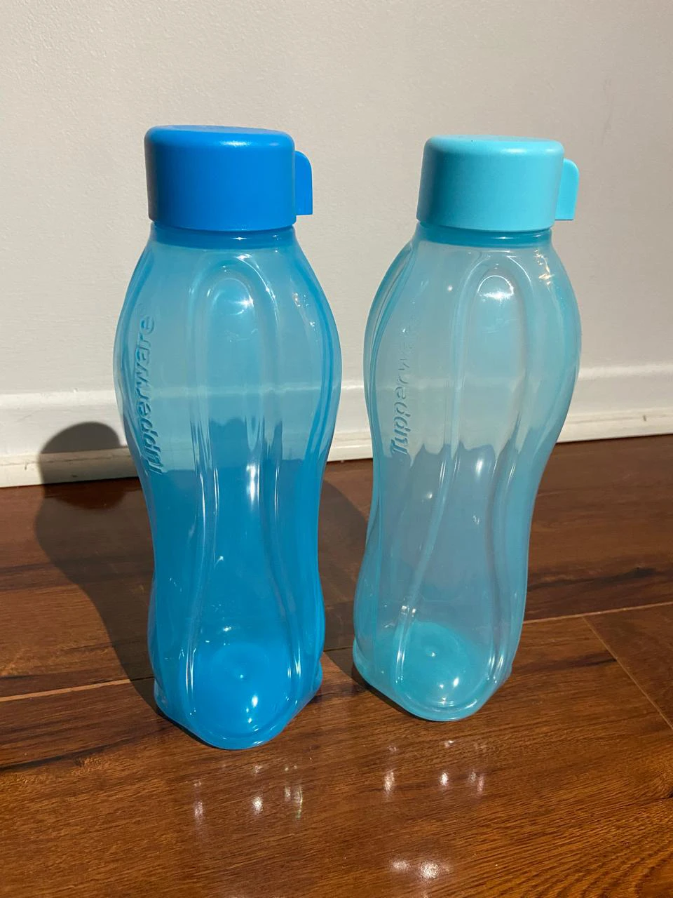 Selling a set of two brand new aqua safe Tupperware water bottles! High grade plastic bottles in two very nice colors. Have never been used before. (Capacity = 1ltr each)