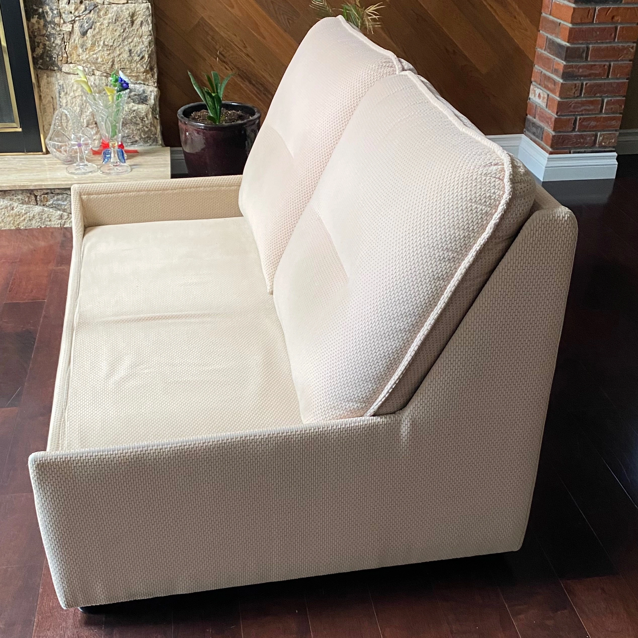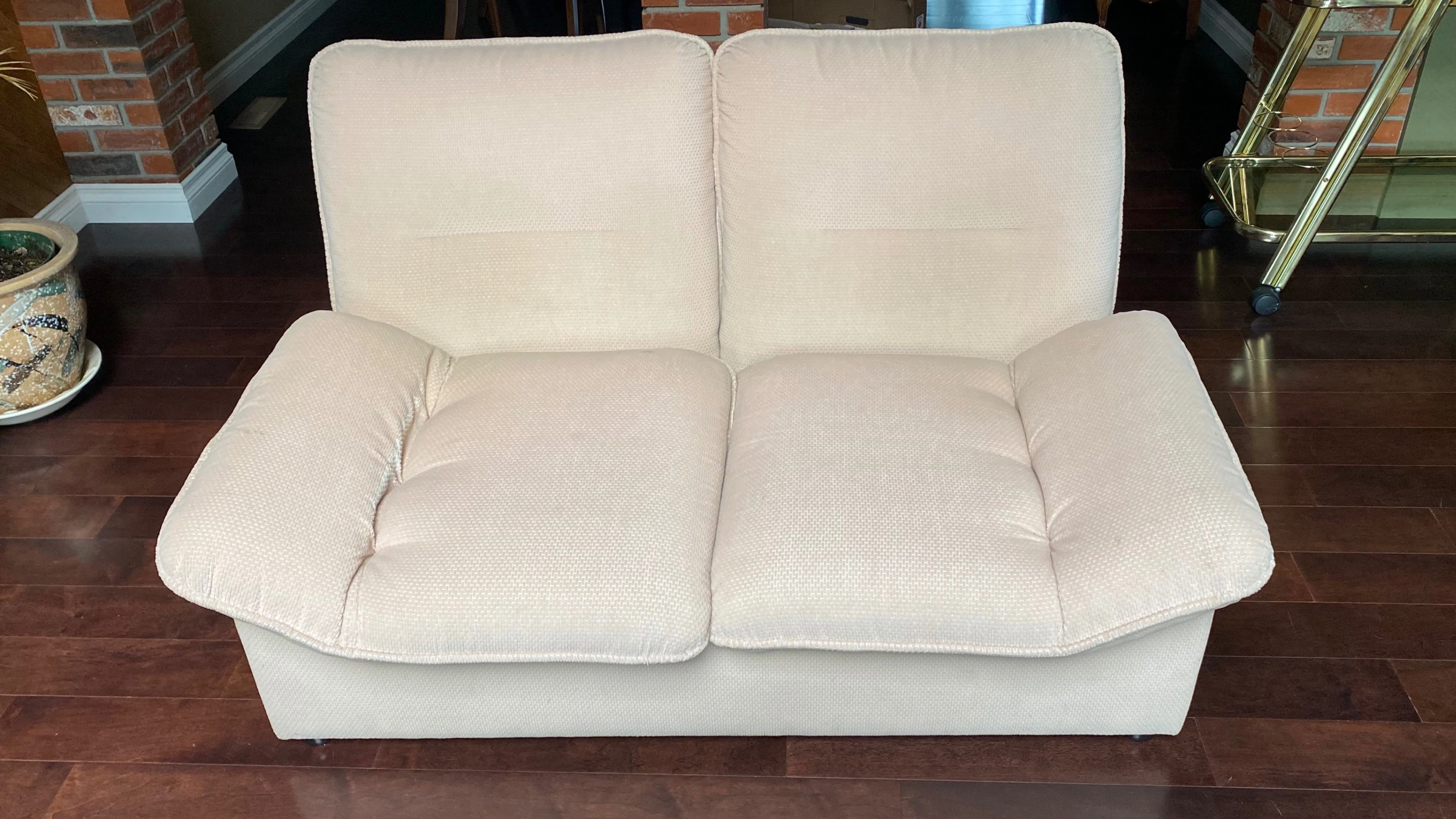Selling a comfy 2 loveseat sofa in a neutral beige colour. It's in great condition and perfect for a smaller space or apartment. The cushions are nice and plush, making it a cozy spot to relax!