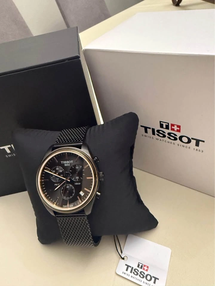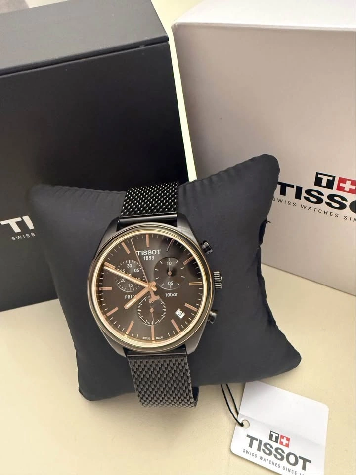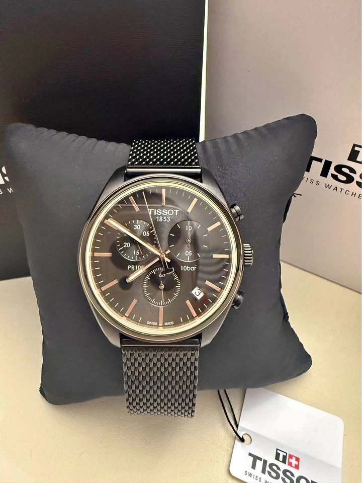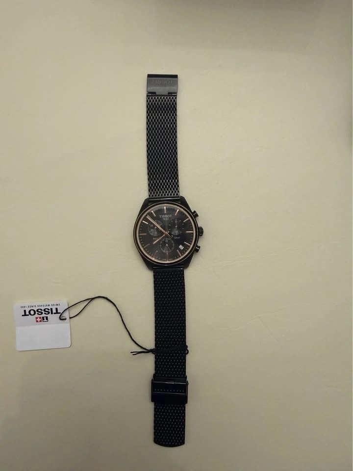 Brand new, never worn. 100% authentic Swiss-made chronograph with a bold black dial and elegant rose-gold accents, a clean, versatile design perfect for everyday wear or dressed-up occasions.