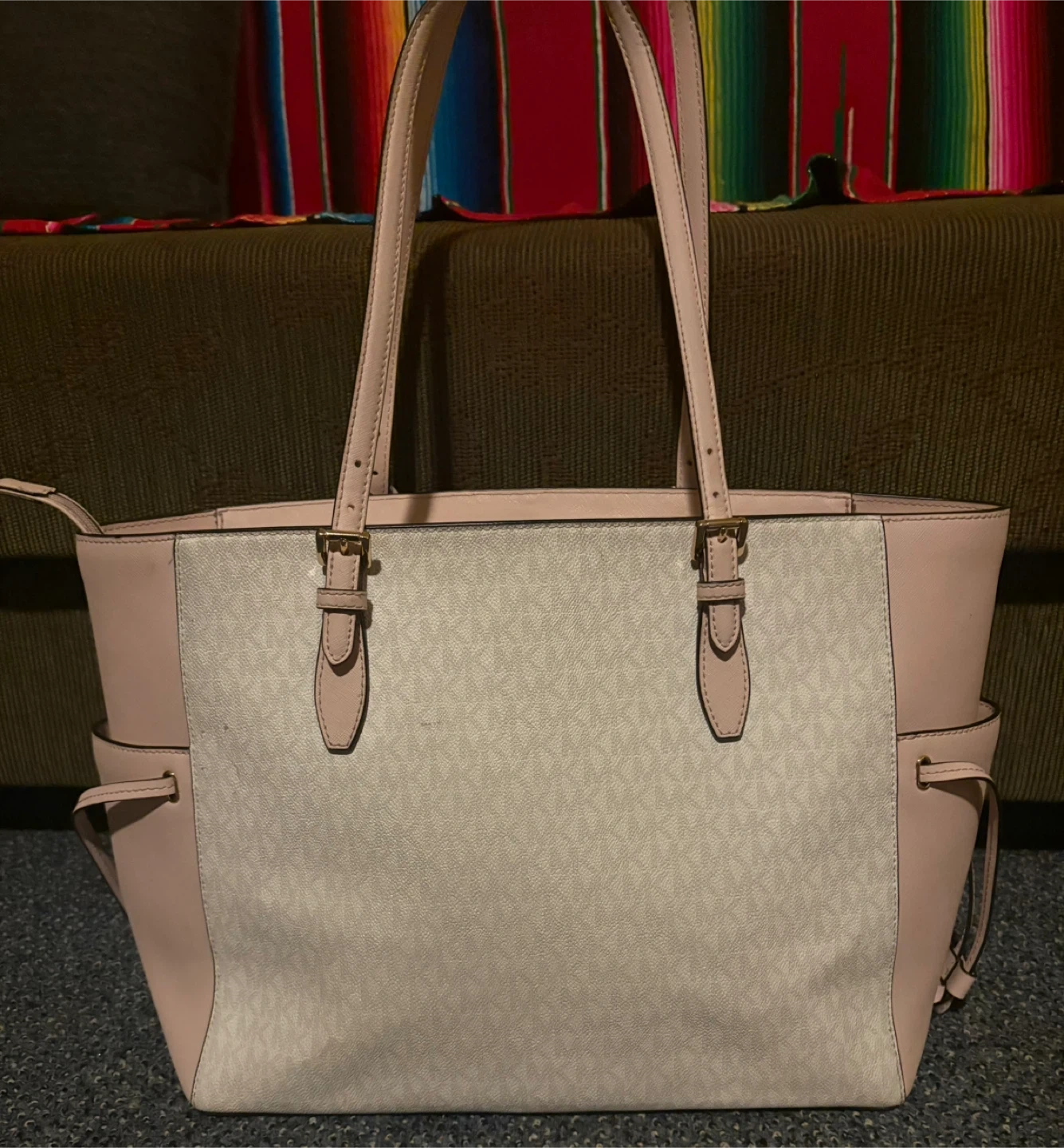 Selling a preowned Michael Kors Gilly Tote bag. It's in great condition and ready for a new owner! This stylish tote features the classic Michael Kors design and is perfect for everyday use.