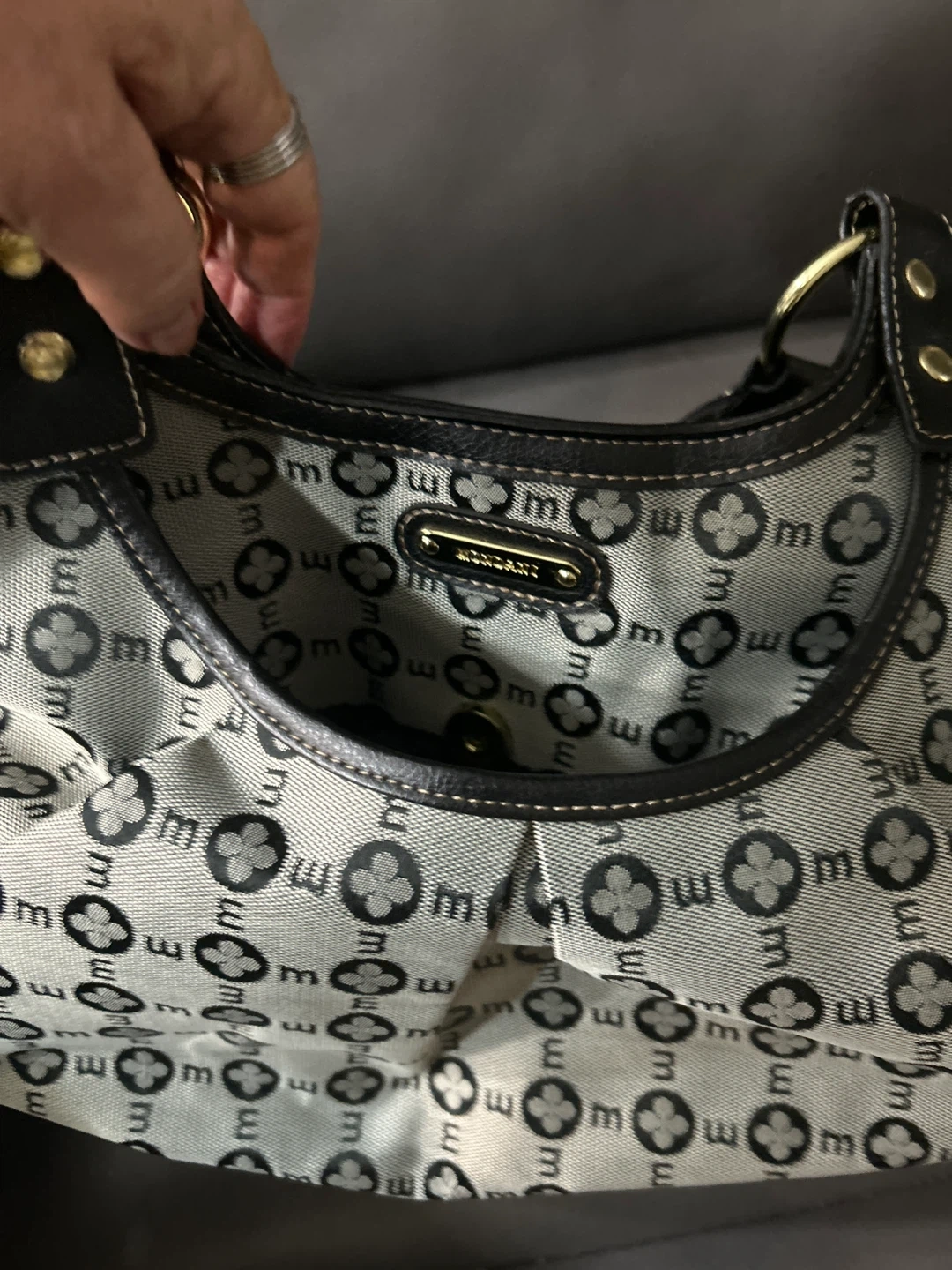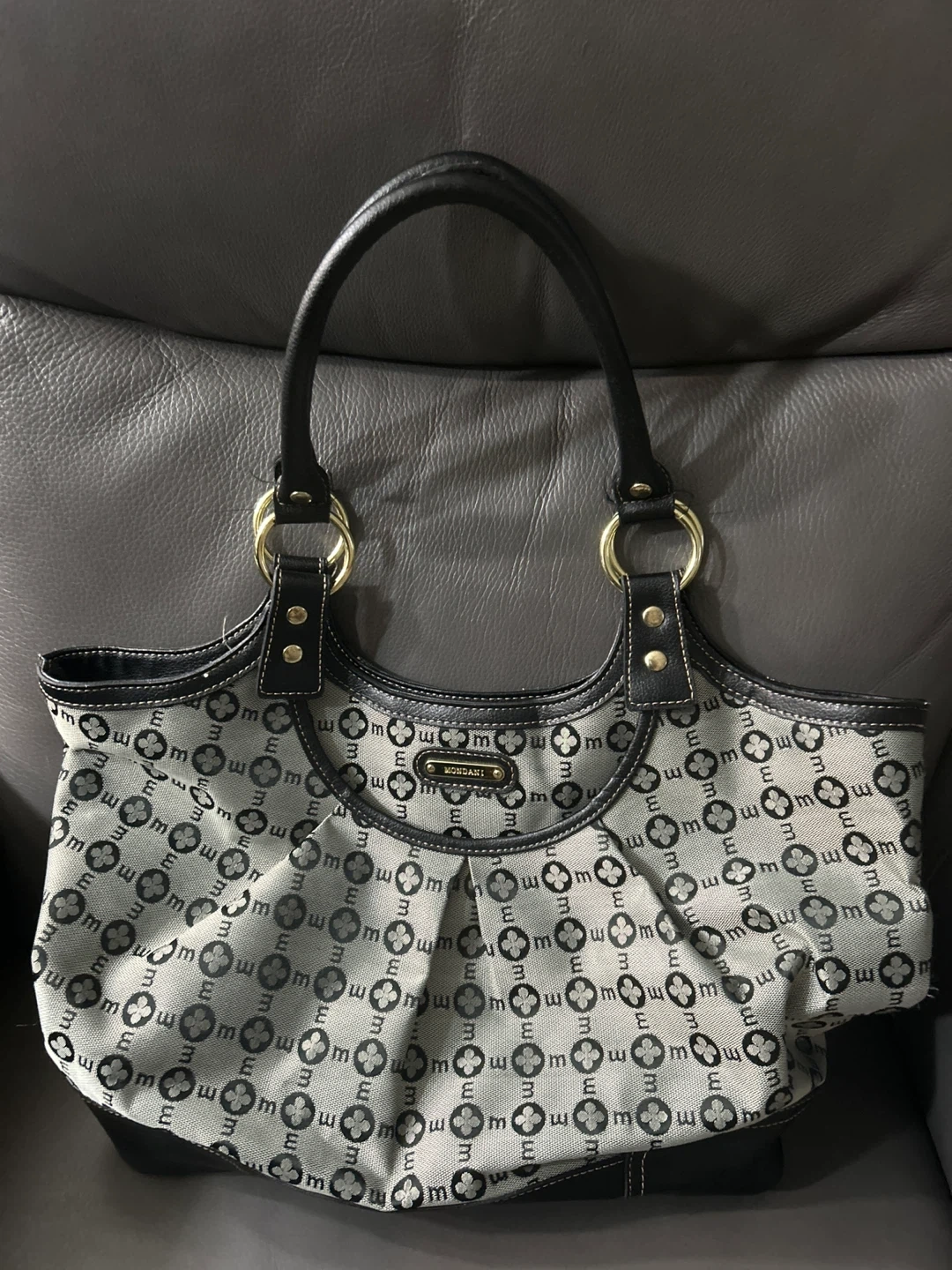 Here's a stylish Mondani New York shoulder bag! It features a unique pattern and classic design, perfect for everyday use. The bag is in great condition and ready for a new owner