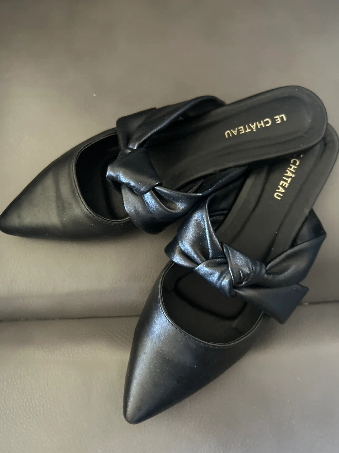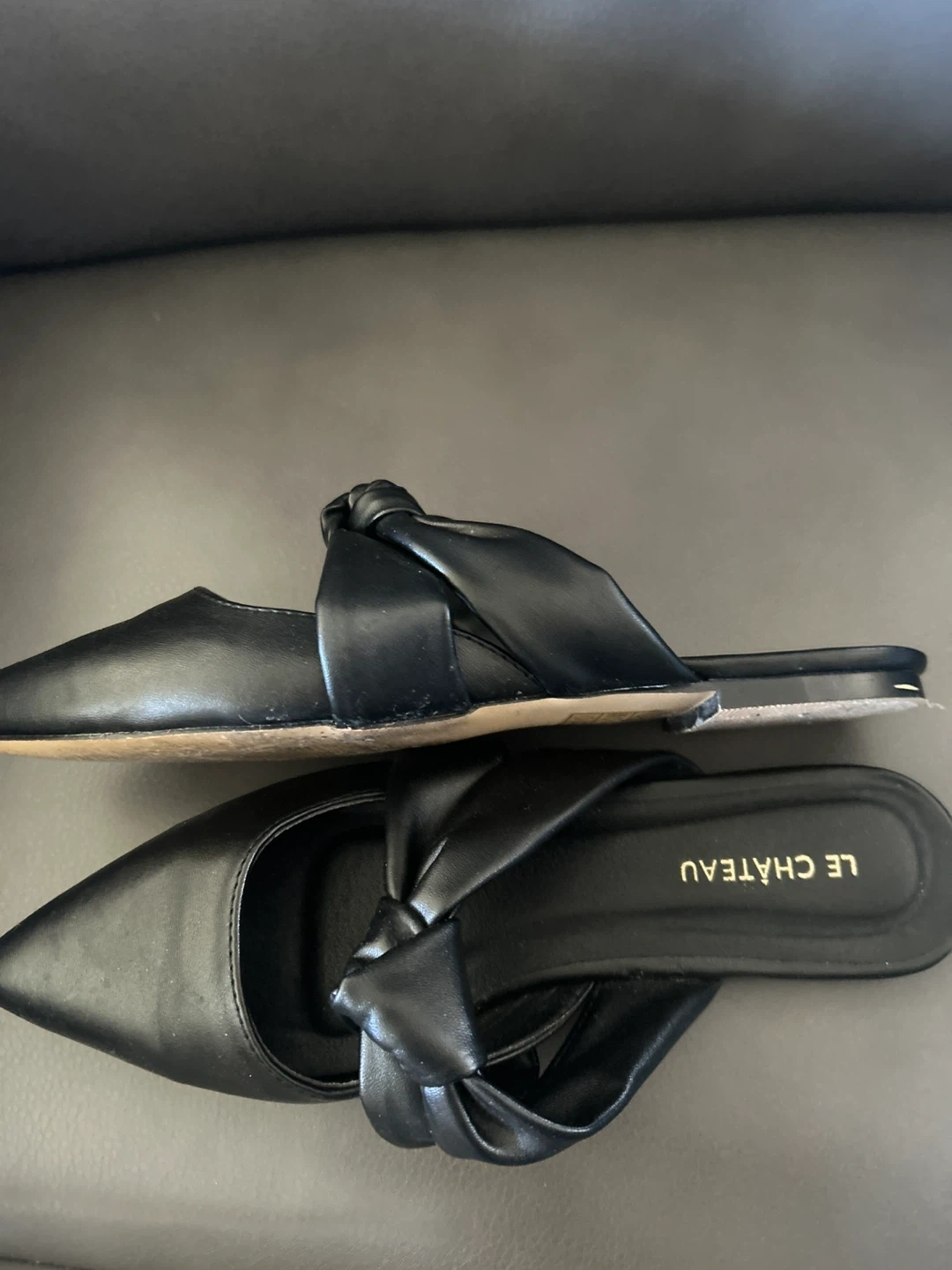 Cute pair of black mules from Le Chateau! They are a size 7 and in great condition. Perfect for dressing up or down!