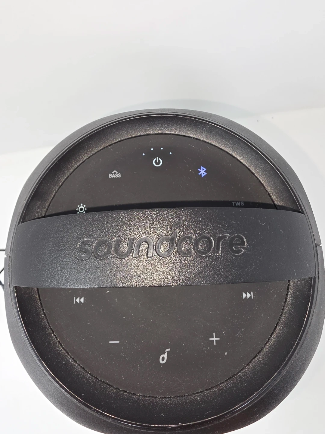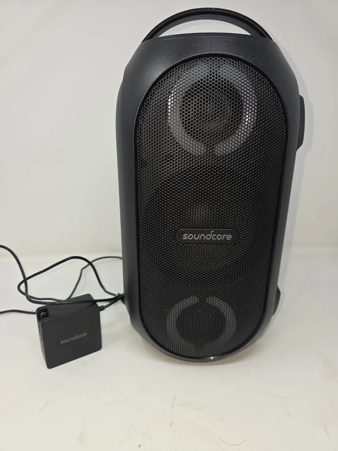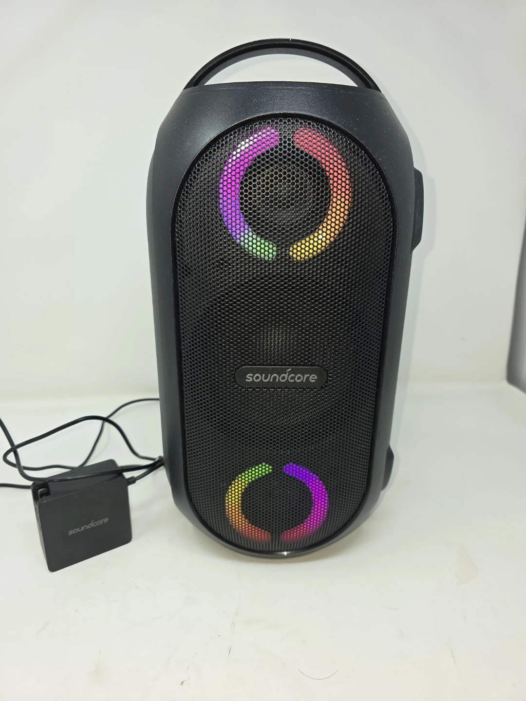 Selling a Soundcore Rave portable Bluetooth speaker in black. It comes with its charger. This speaker is perfect for parties and outdoor gatherings! Enjoy great sound quality and a fun light display with this portable speaker.