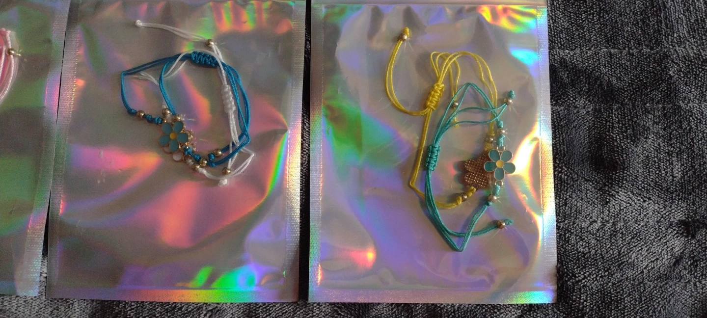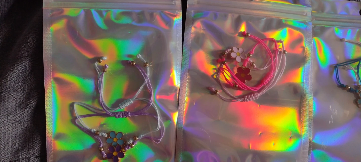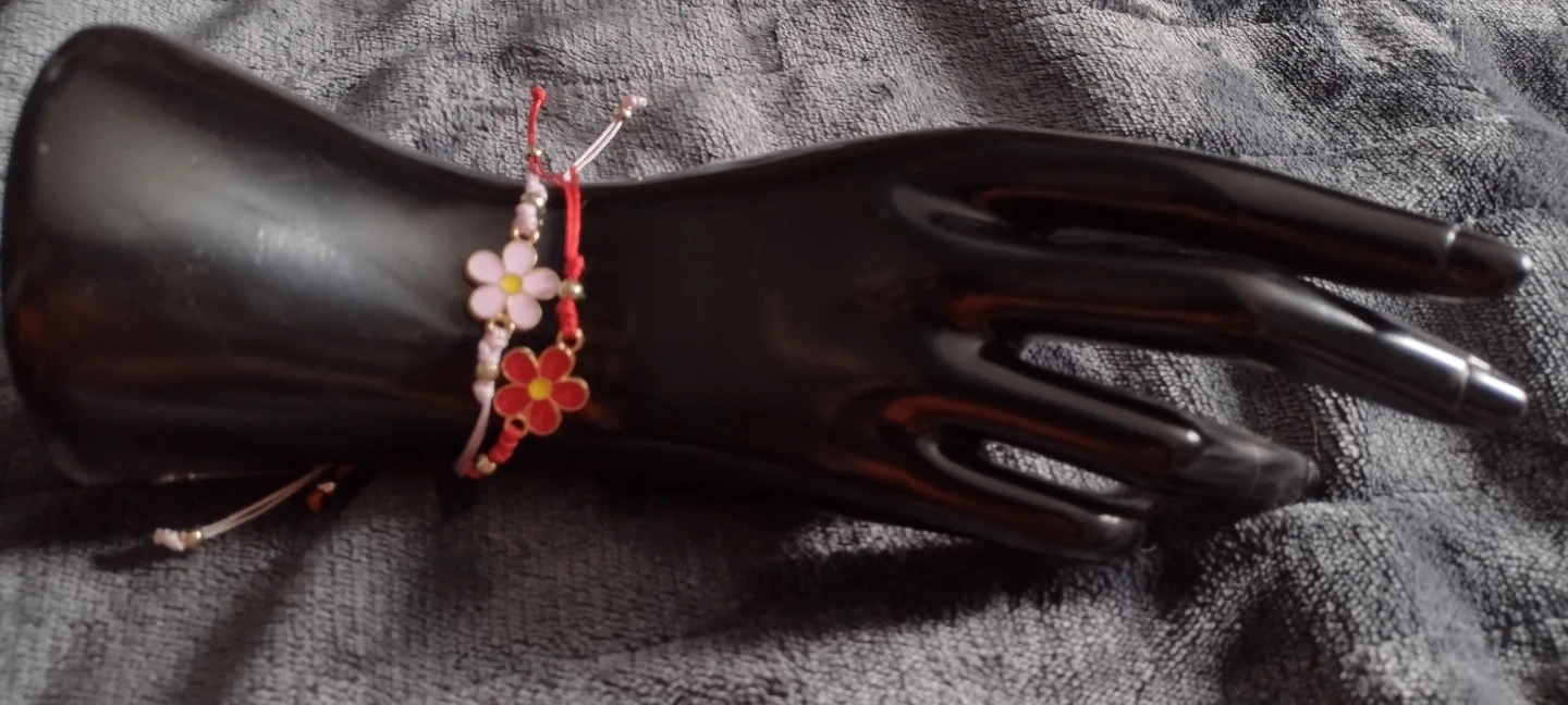 . These are very Popular for giving as Friendship Bracelets.Check out these cute handmade bracelets! They each feature a delicate flower charm and adjustable string. Perfect for adding a touch of whimsy to any outfit.Please contact for prices. Great to add to Party loop bags/ Gift Baskets/ Gift Baskets. Great Gift for Valentine's or someone Special