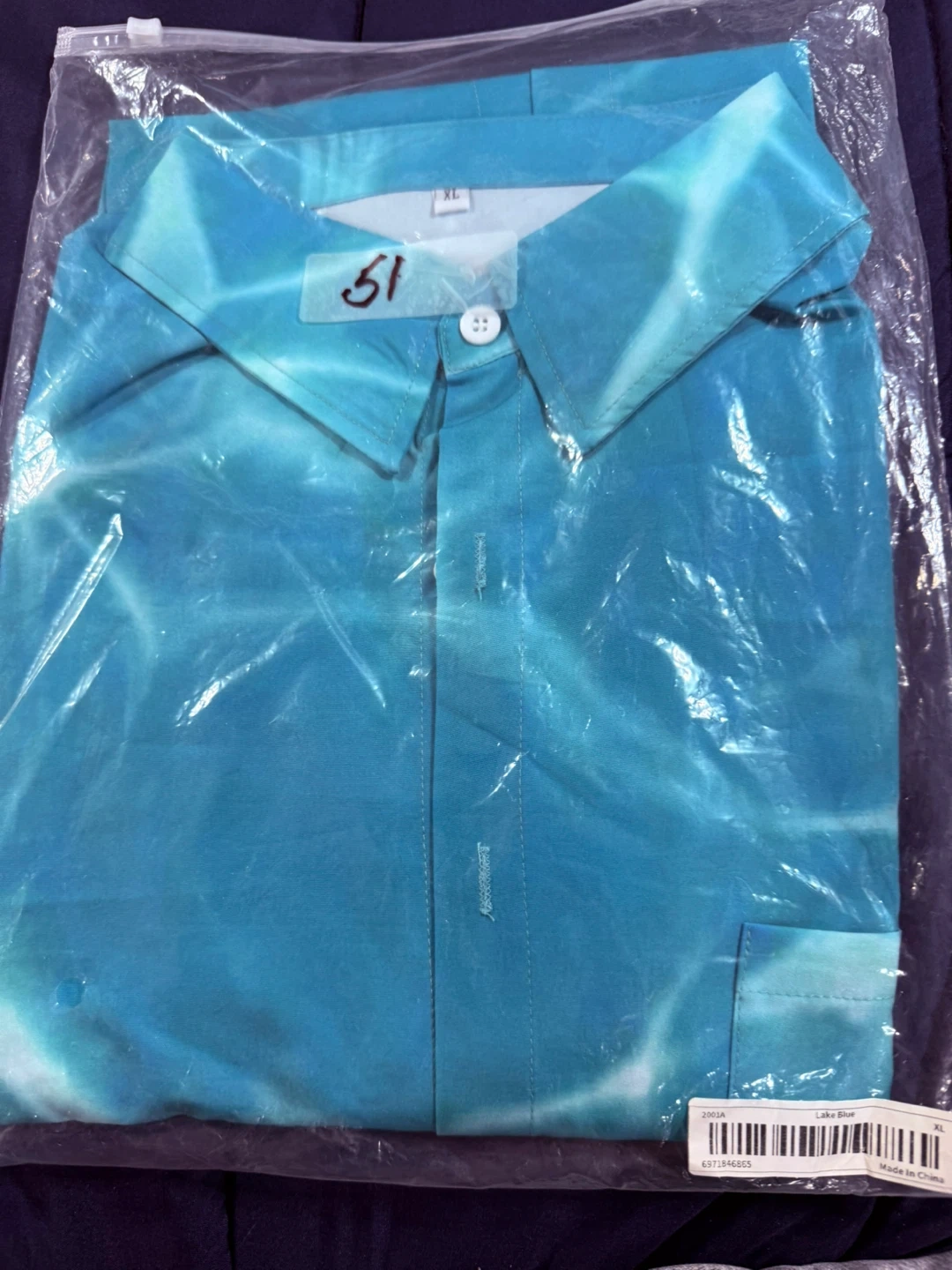 I'm selling a blue button-down shirt in size XL. It's still in the original packaging!