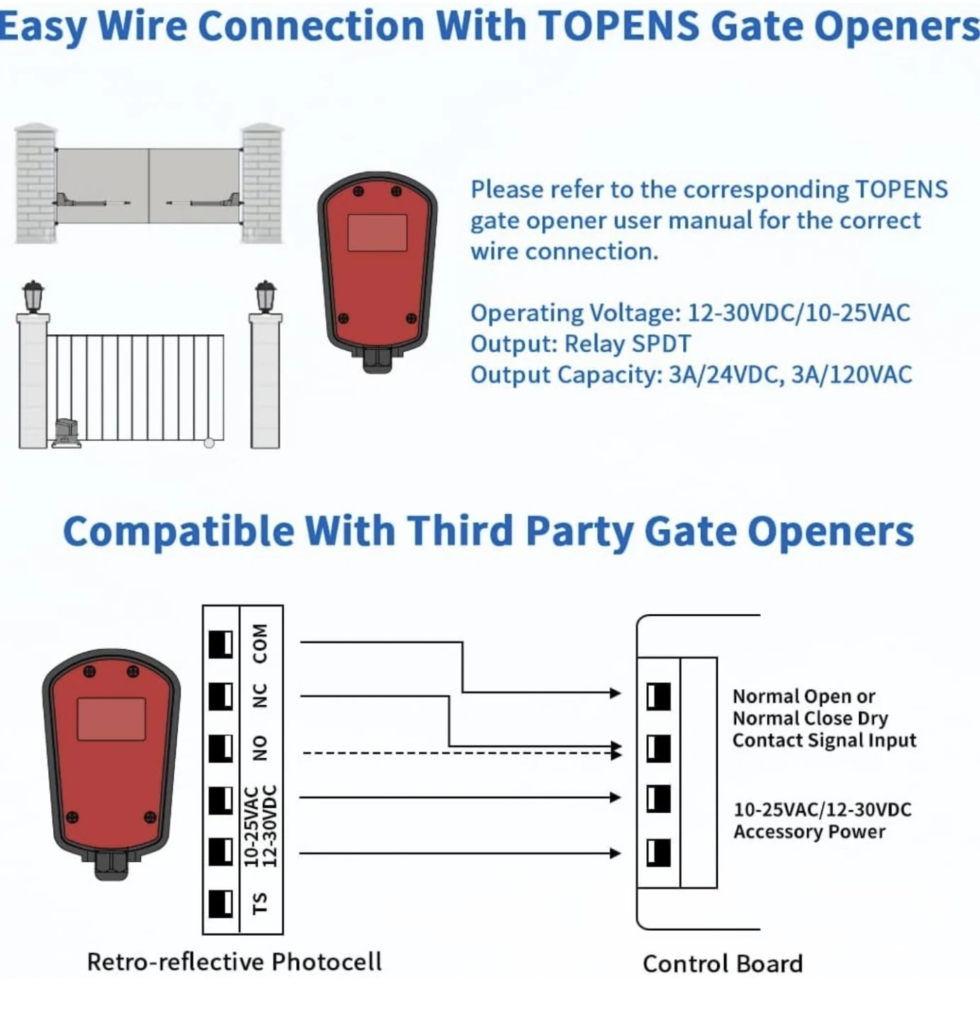 TOPENS Gate Opener Retro-reflective Photocell