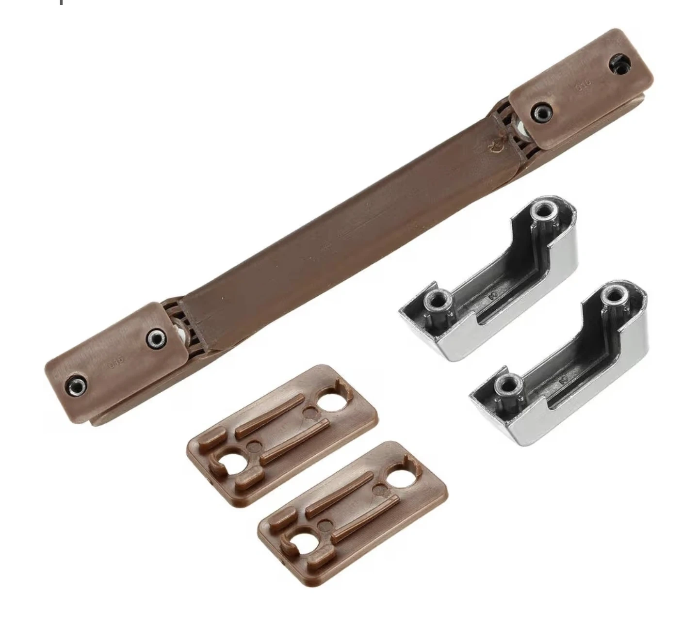Selling a set of suitcase luggage handle replacements. The handle is brown and measures 220mm / 8.66" in length. The mounting brackets are included, with both brown and silver options. Perfect for repairing your favourite suitcase!