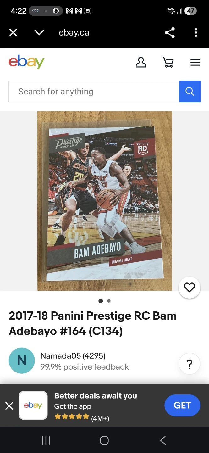 Selling a 2017-18 Panini Prestige Rookie Card of Bam Adebayo, card number 164 and series C134. A great addition to any basketball card collection!
