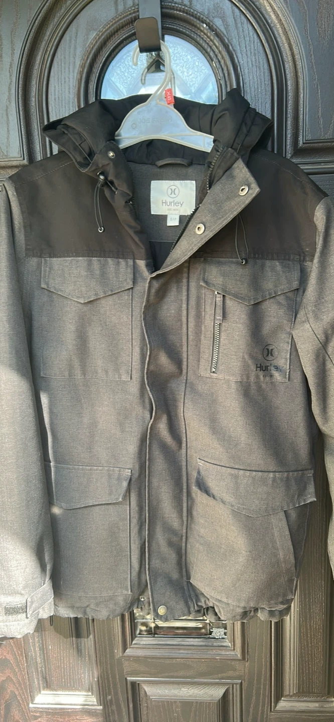 Selling a Hurley jacket in size small! It's in great condition and features a stylish design with multiple pockets. Perfect for staying warm and looking good!