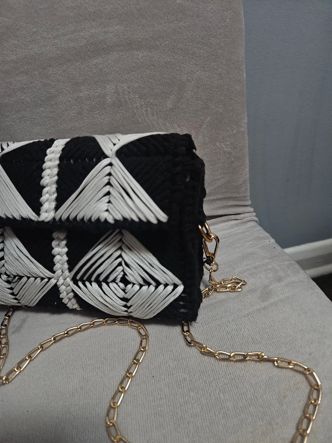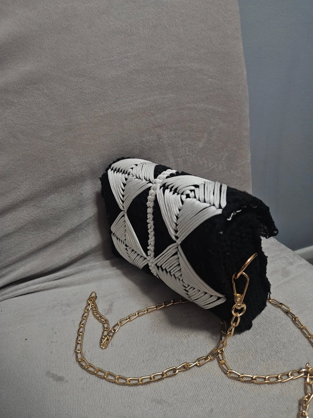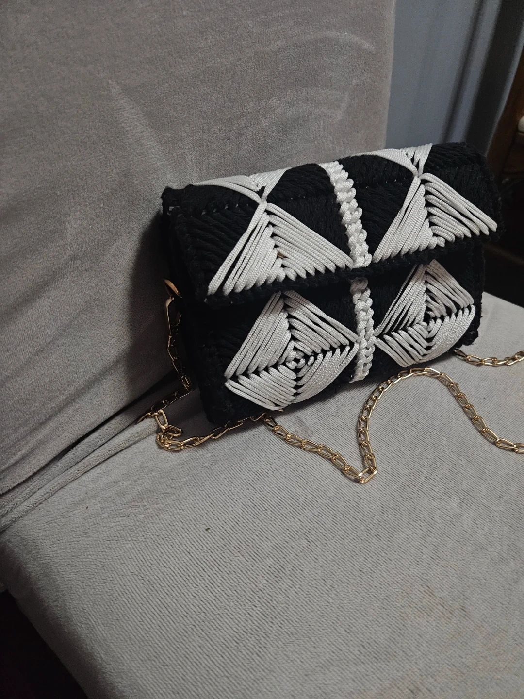 Handmade Black & White Crochet Bag