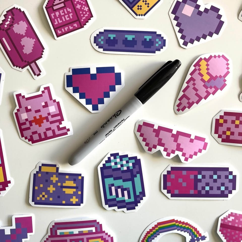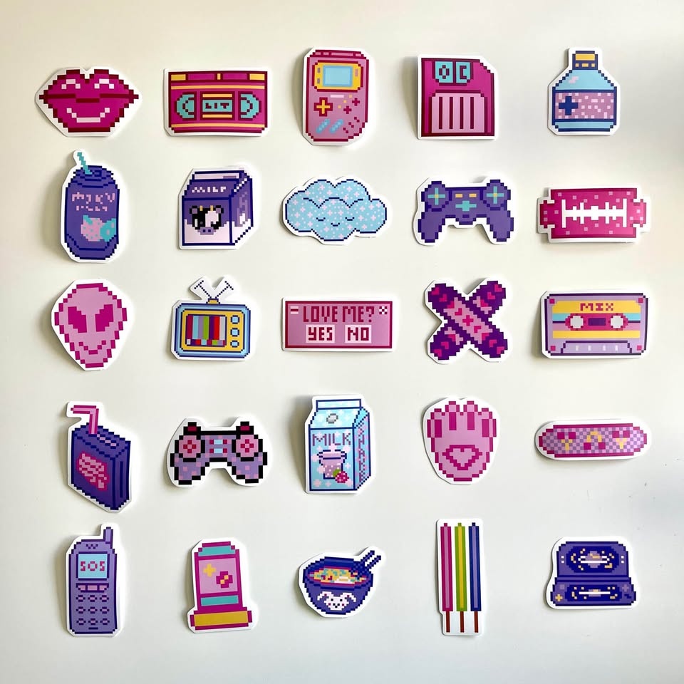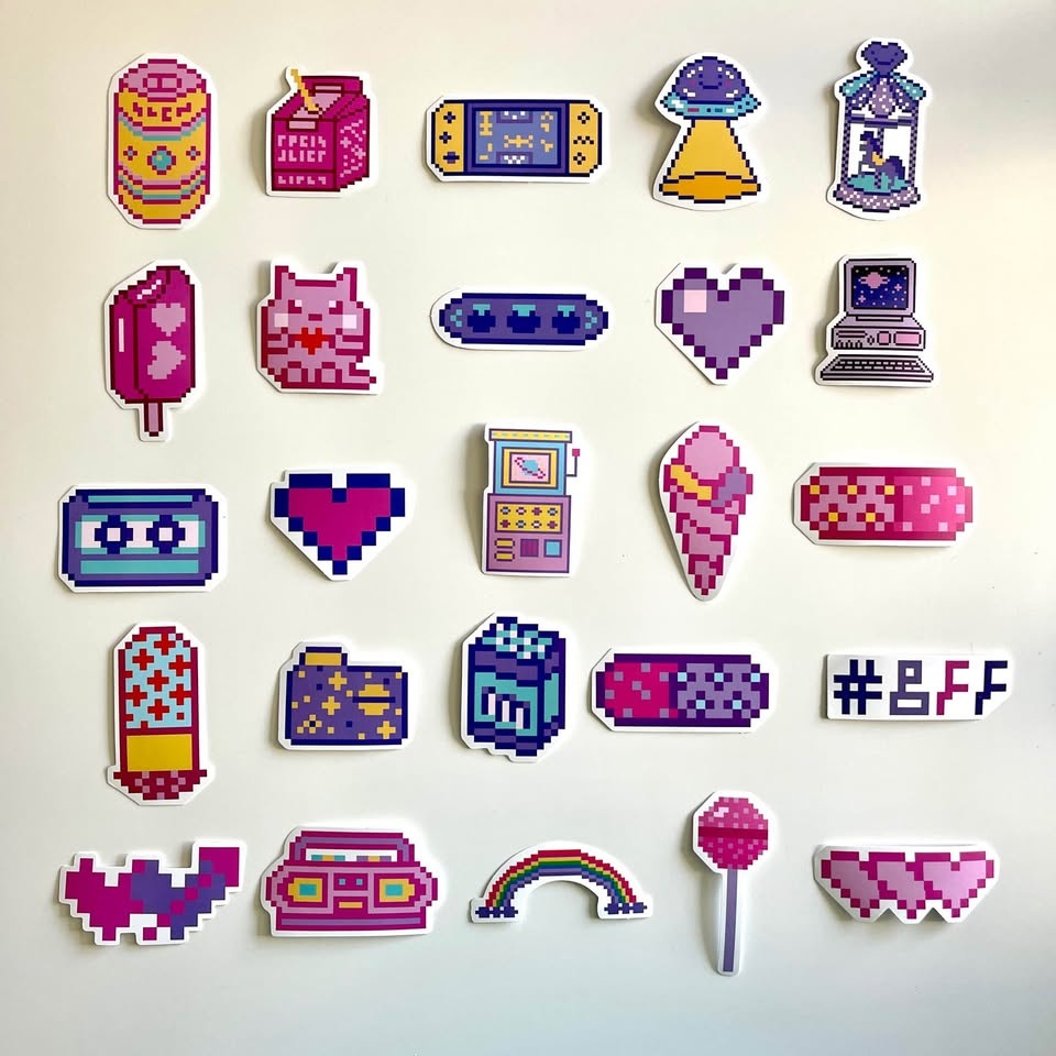Pack of 50 Cute Cartoon Pixel Stickers #Cleanout