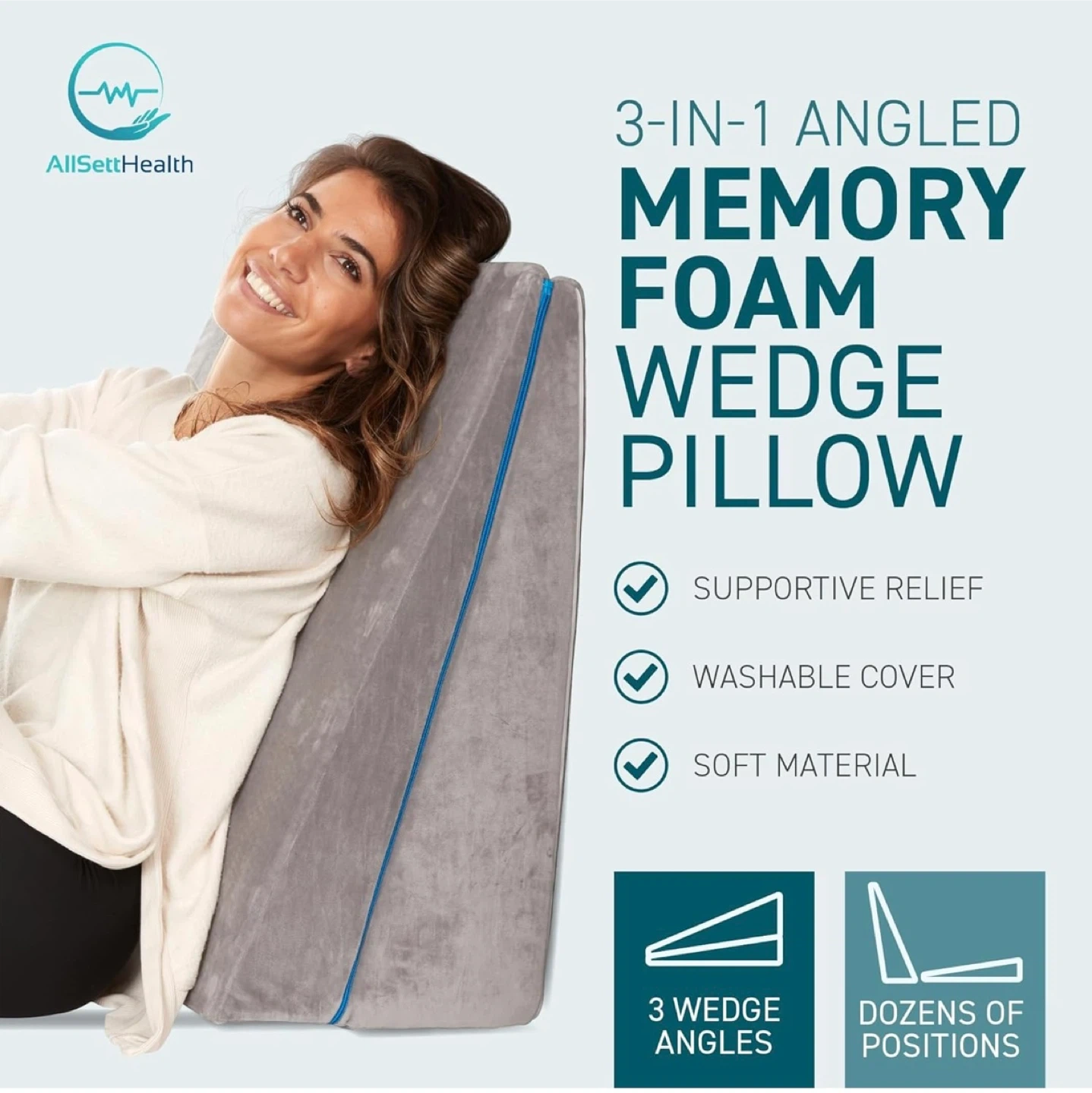Combination Zipper Technology | Memory Foam Bed Wedge pillow for sleeping, Acid Reflux, Anti Snore, Machine Washable