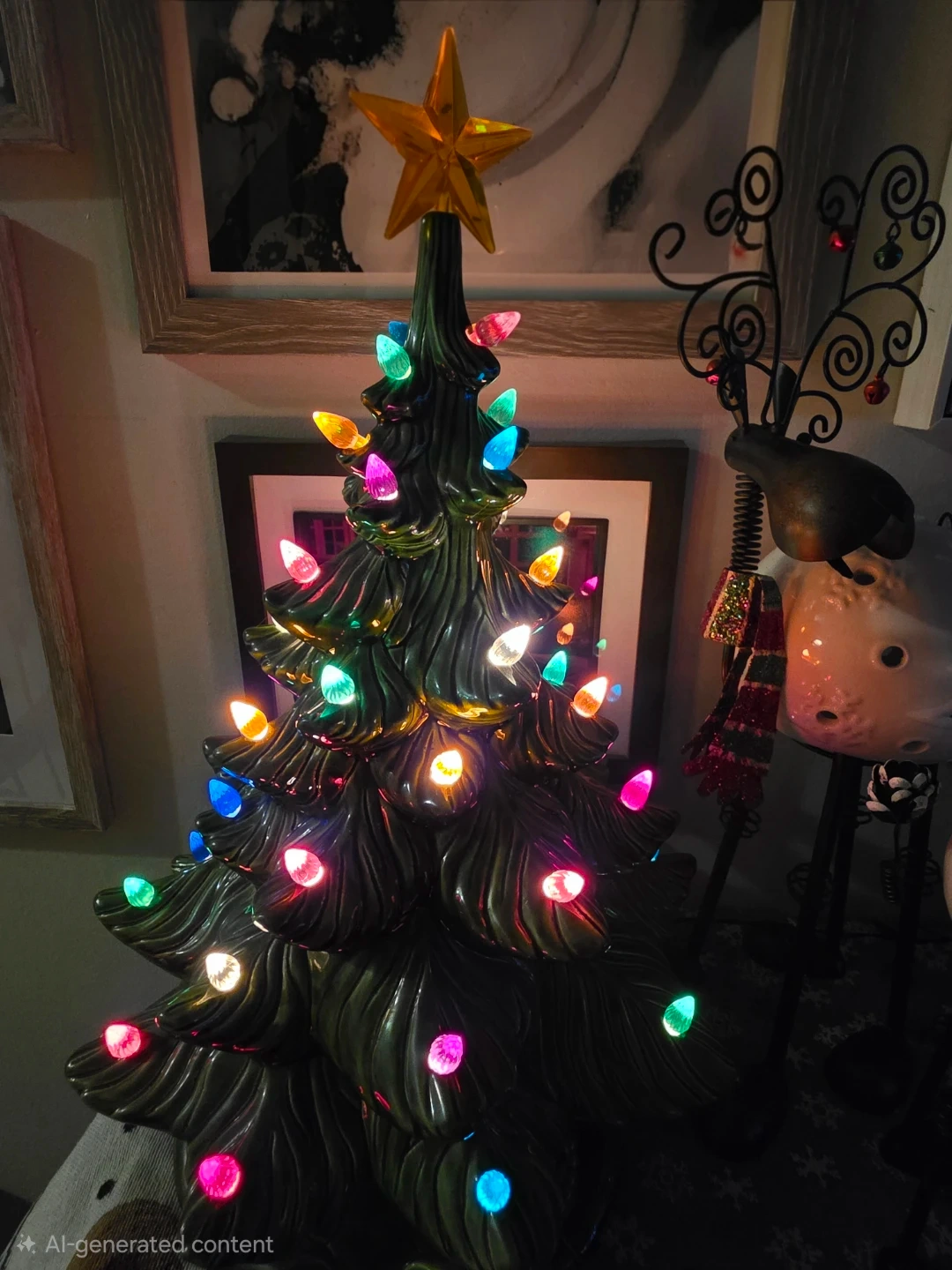 Selling a vintage ceramic Christmas tree, complete with colourful lights and a star on top! It's in mint condition and ready to brighten up your holiday season