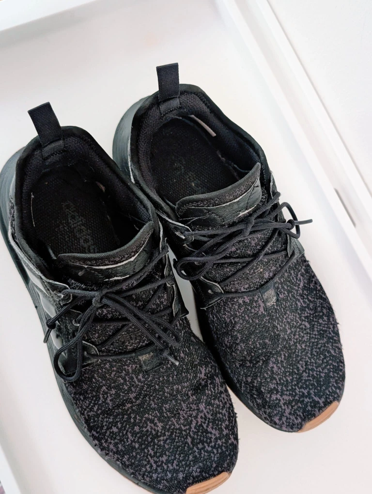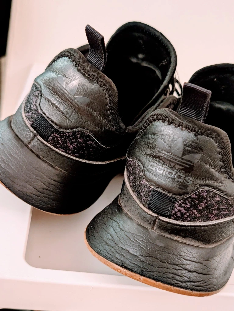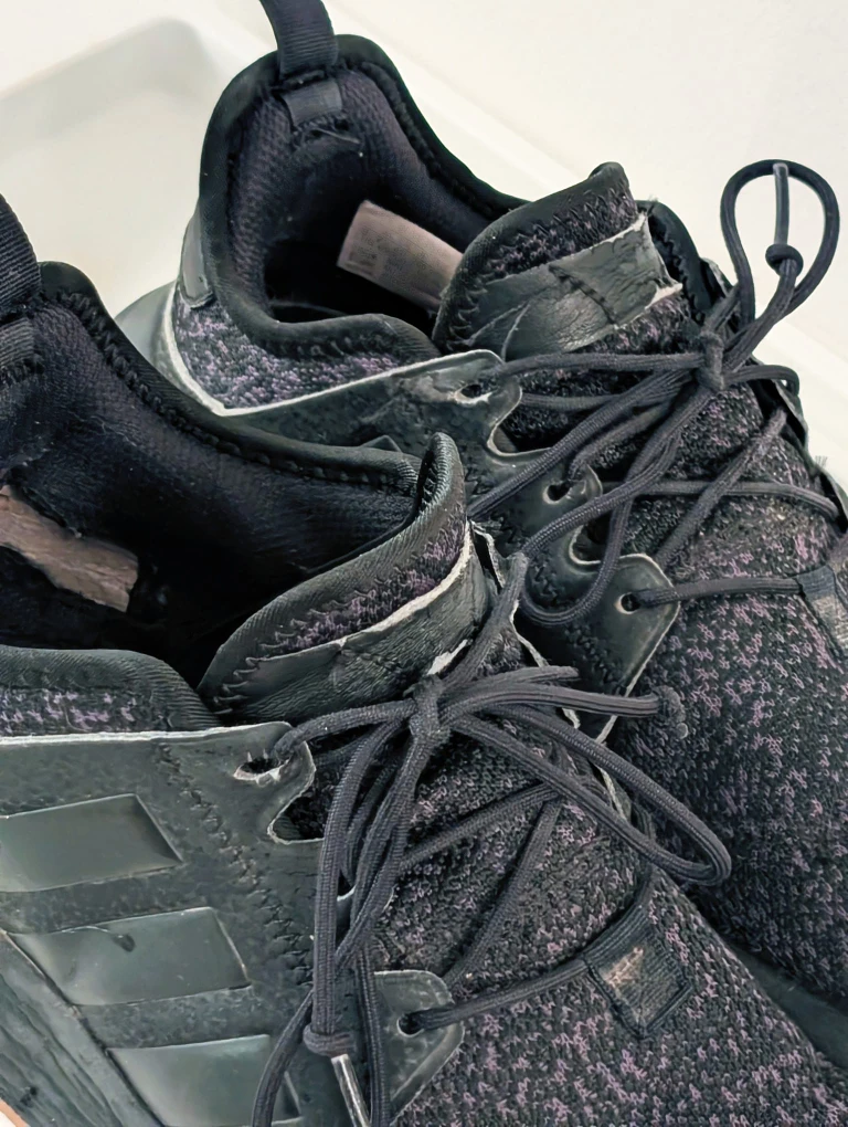 Selling a pair of men's Adidas running shoes in black. They have a cool, textured design and are in good condition for everyday wear. Perfect for hitting the pavement or just running errands!