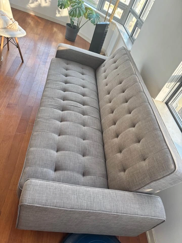 Convertible Grey Tufted Sofa Bed / Futon (Like New!) pickup only