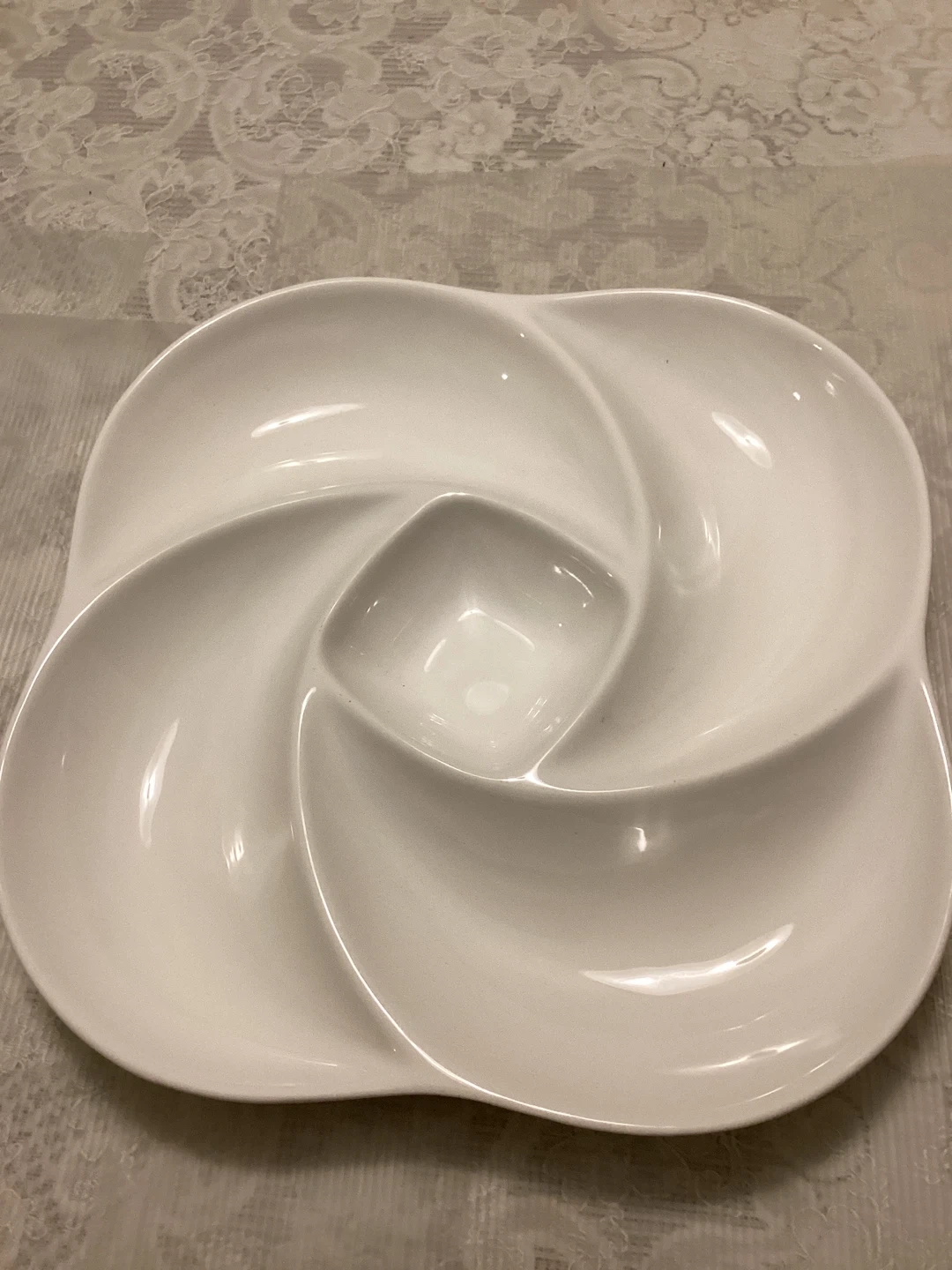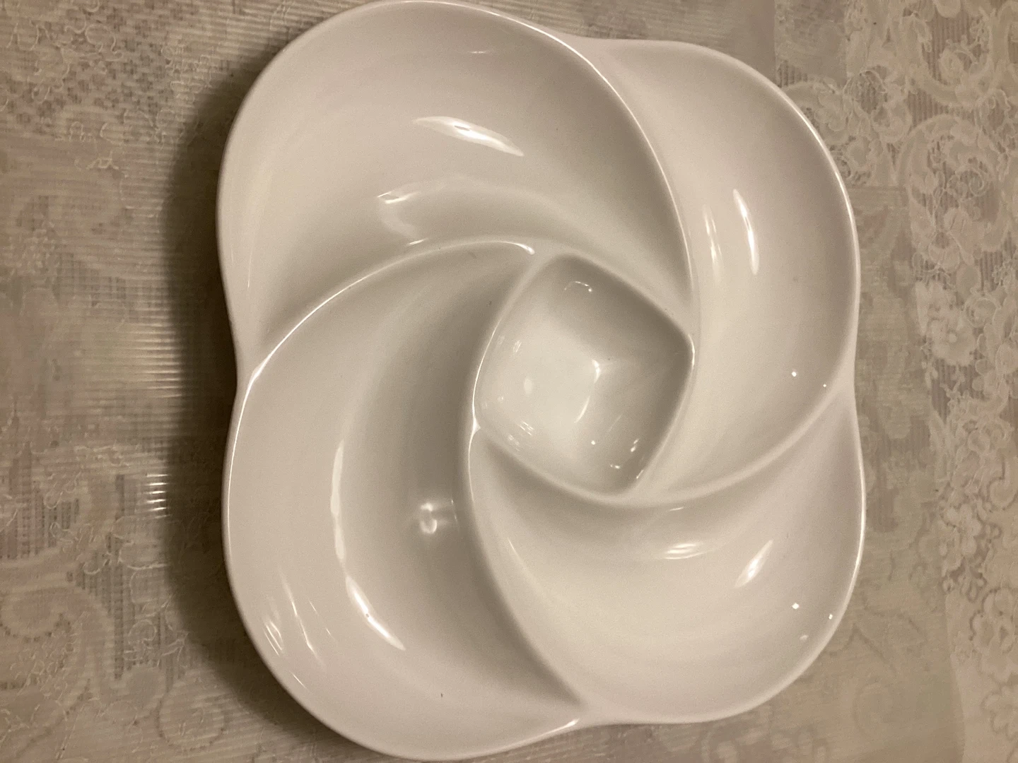 Here's a DII Festive divided serving dish! It's brand new and ready for your next gathering. The original price tag on the bottom says $17.99. Great for serving snacks or appetizers!