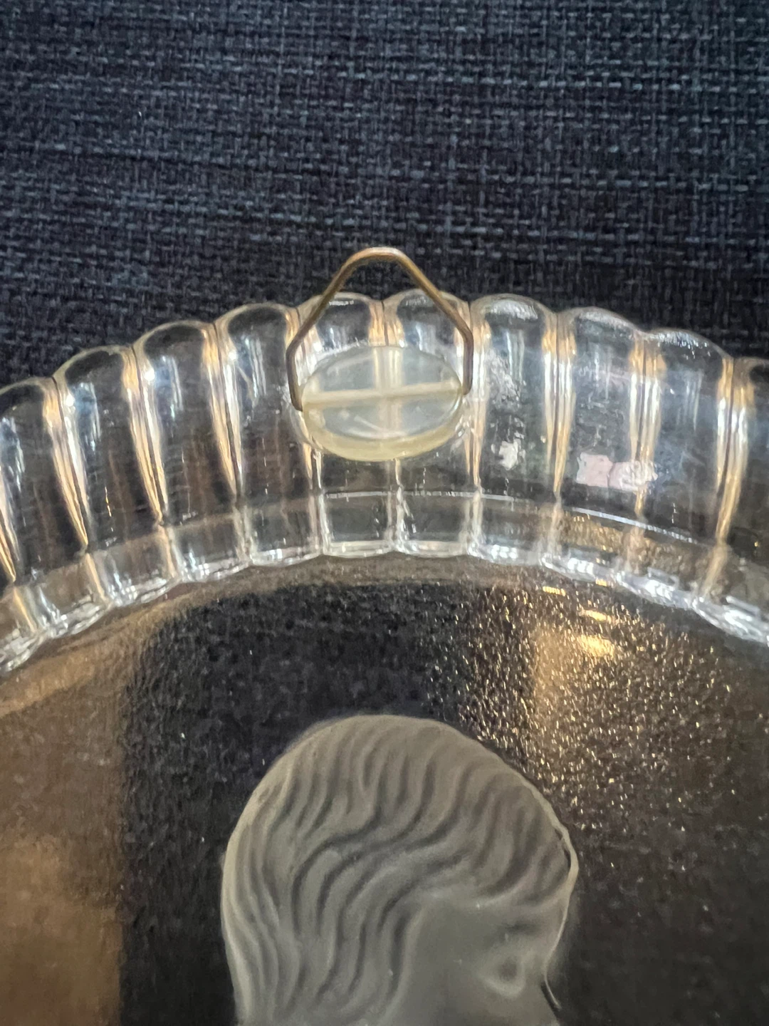 Selling a lovely vintage Fenton glass plate from 1978. It features a delicate design with a praying child in the center. Perfect for collectors or anyone who appreciates vintage decor!