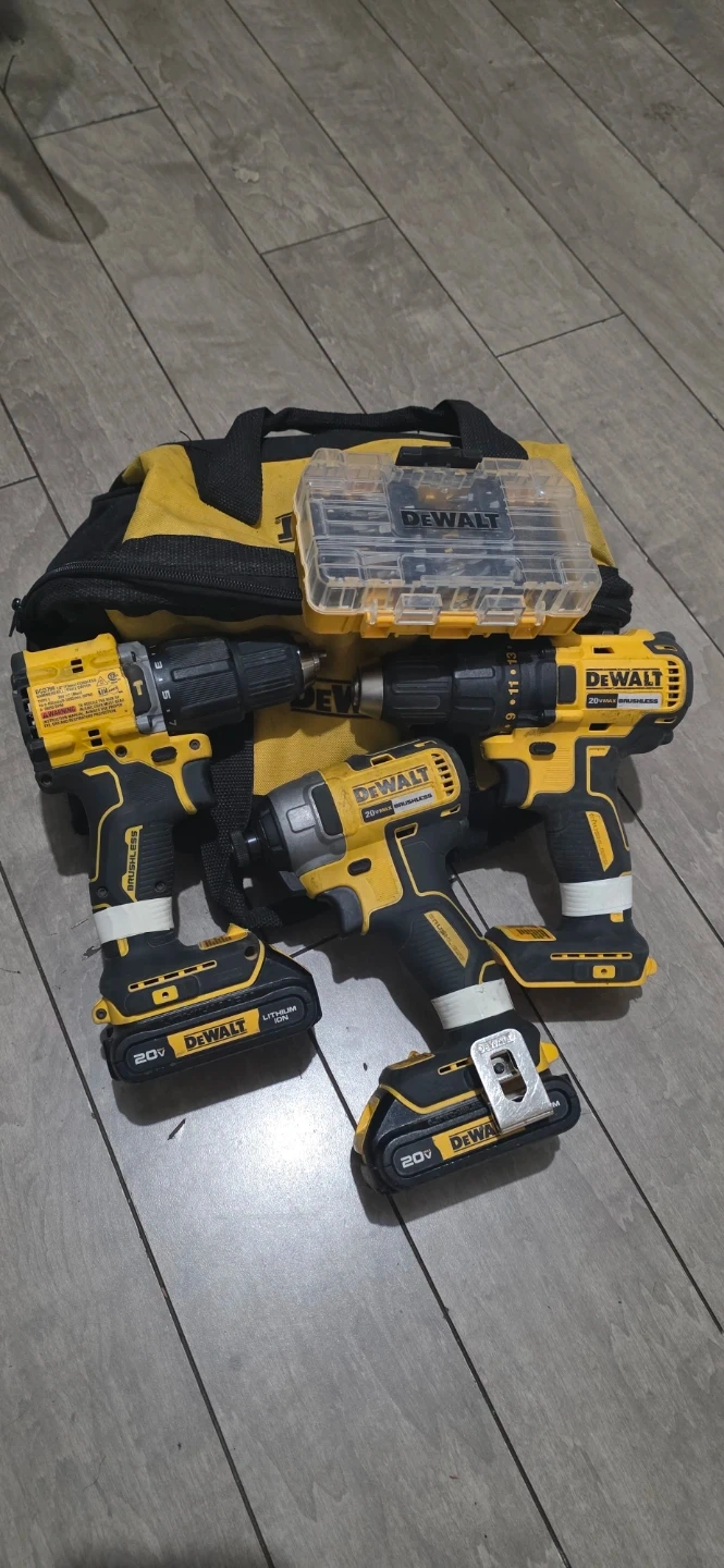• 3 DeWalt Driils (Drill, Impact and Hammer)