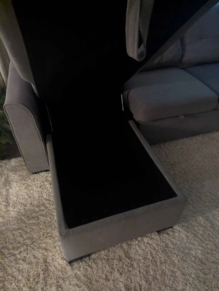 Mint condition. Like new. Chaise is reversible to either side. Just steam cleaned that's why one cushion looks different (still damp) Has a pull out bed, and chaise opens up for storage. Measures 7 foot 4 Inches by 5 feet No damages at all Smoke and pet free