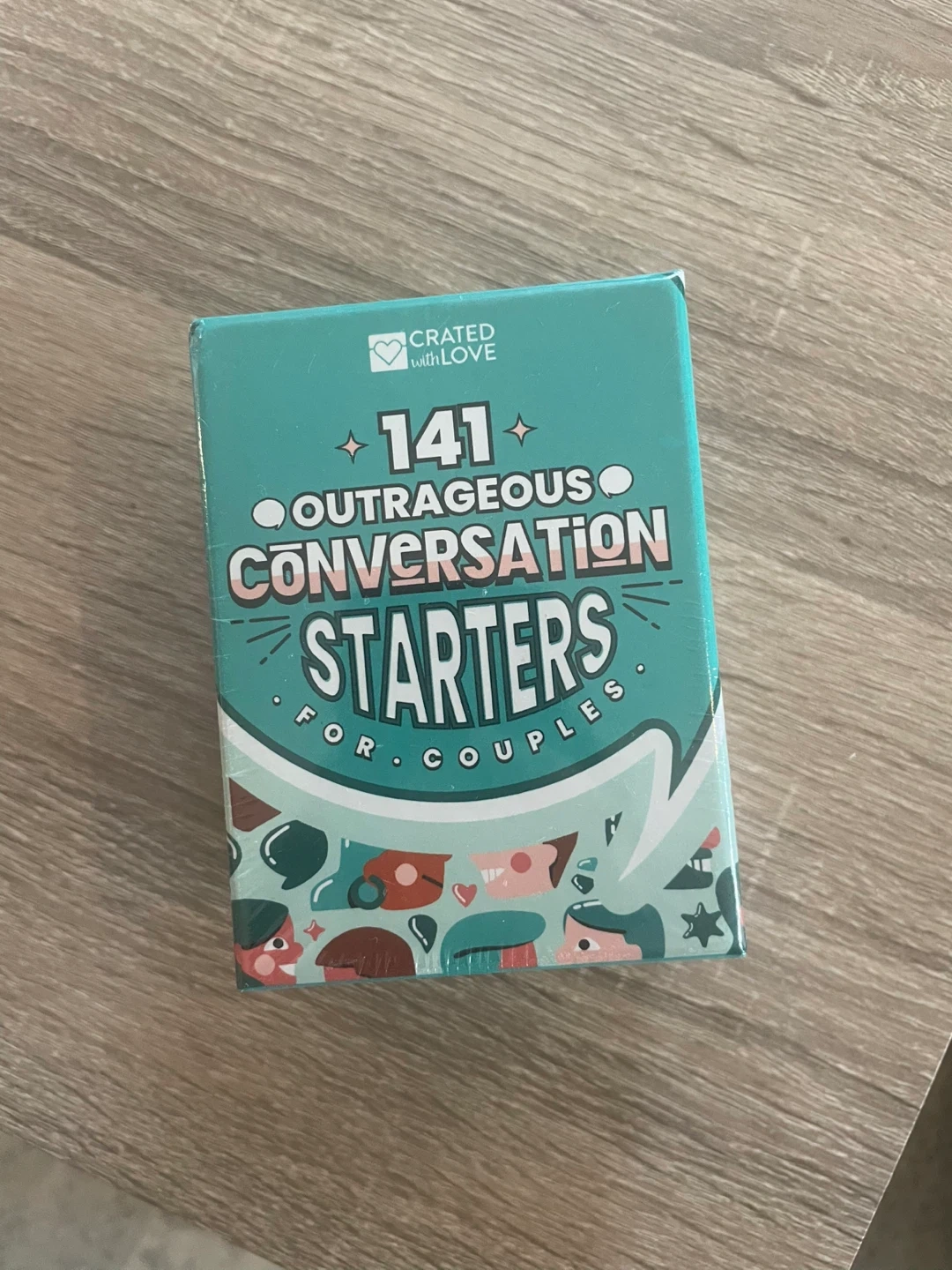 Selling a Crated With Love game called 141 Outrageous Conversation Starters for Couples! It's a fun game to get to know your partner better