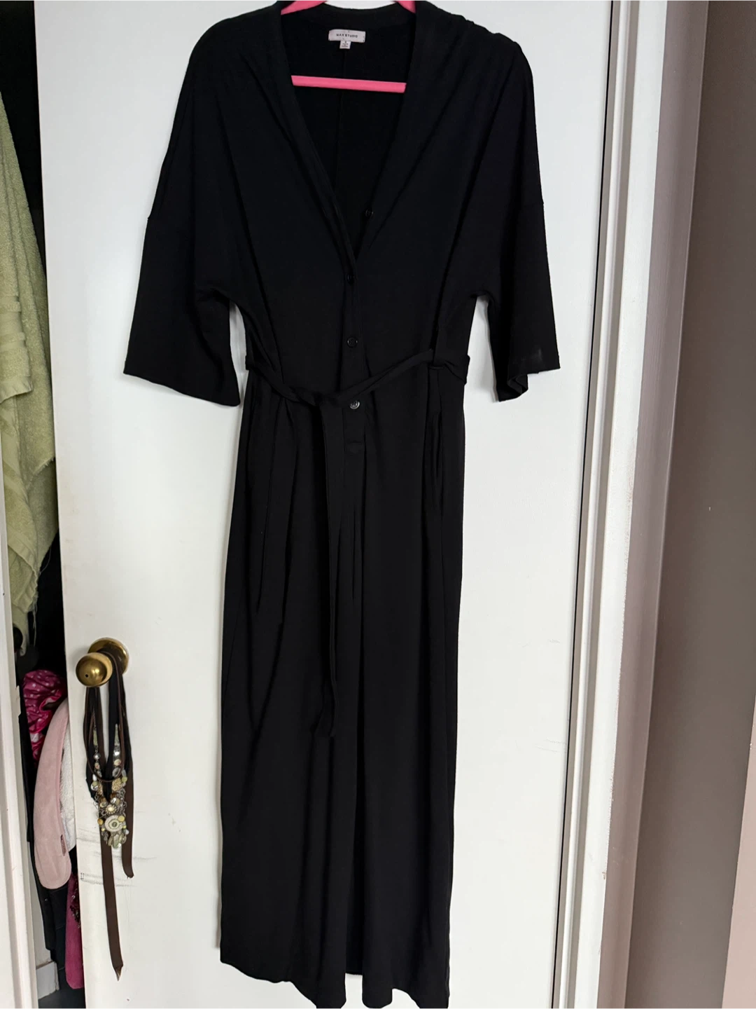 Selling a stylish black jumpsuit from Ayr Studio! It features a flattering silhouette with a belted waist and a comfortable fit. Perfect for dressing up or down!