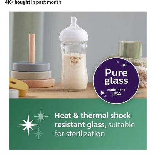 • 3 × 4 oz (120 ml) glass baby bottles – Flow 2 (Slow)
