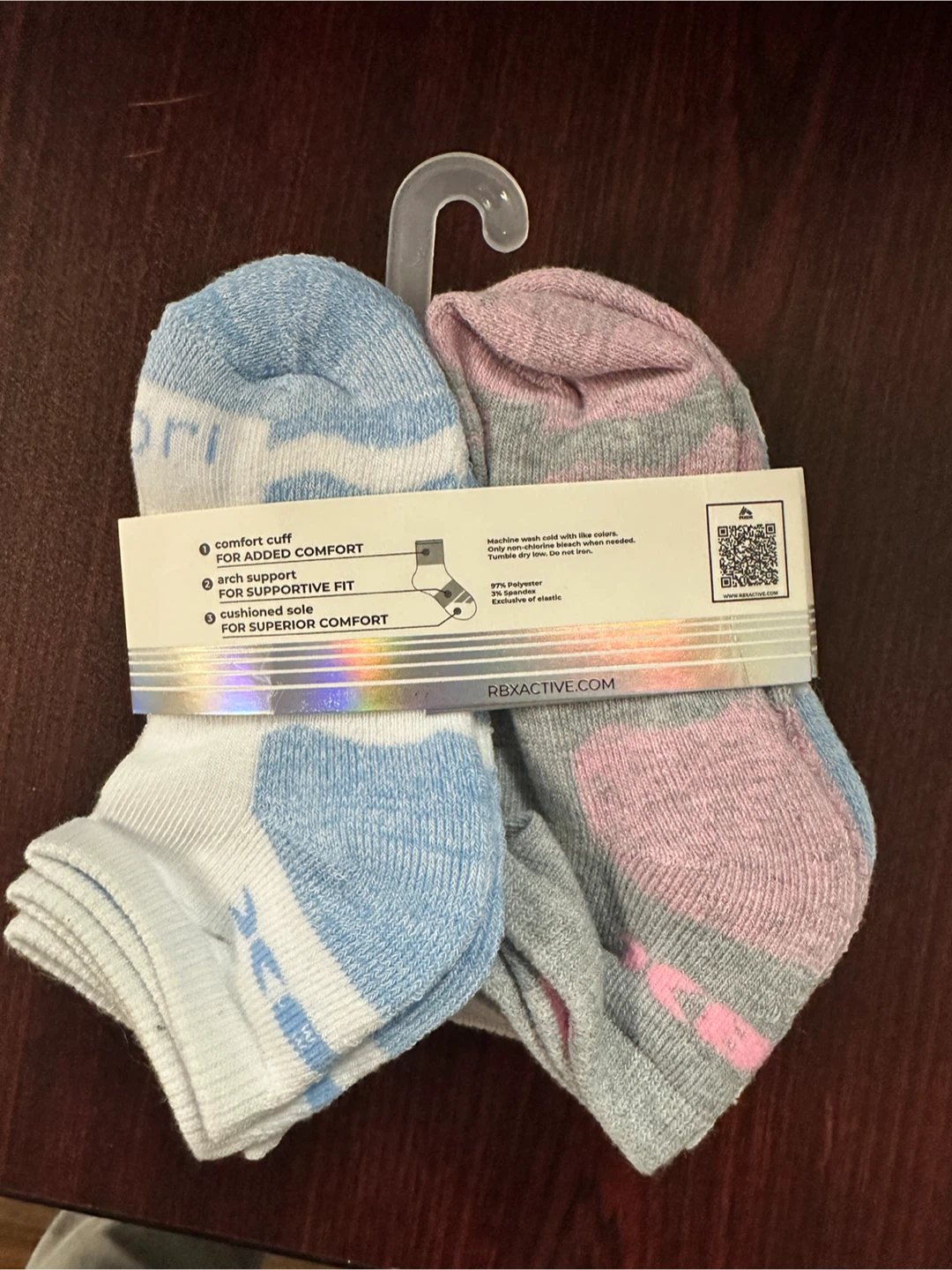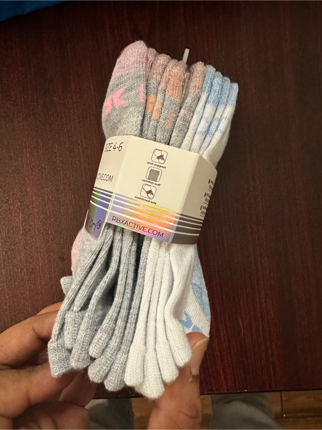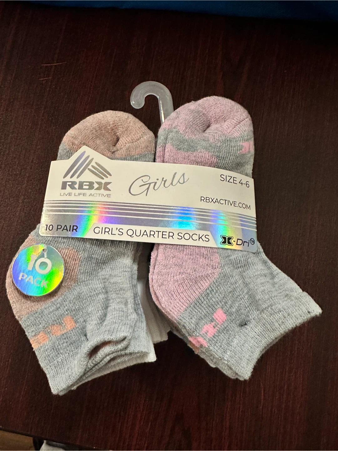 These are brand new RBX girls quarter socks, size 4-6! There are 10 pairs in the pack. They have a comfort cuff, arch support, and cushioned sole for superior comfort