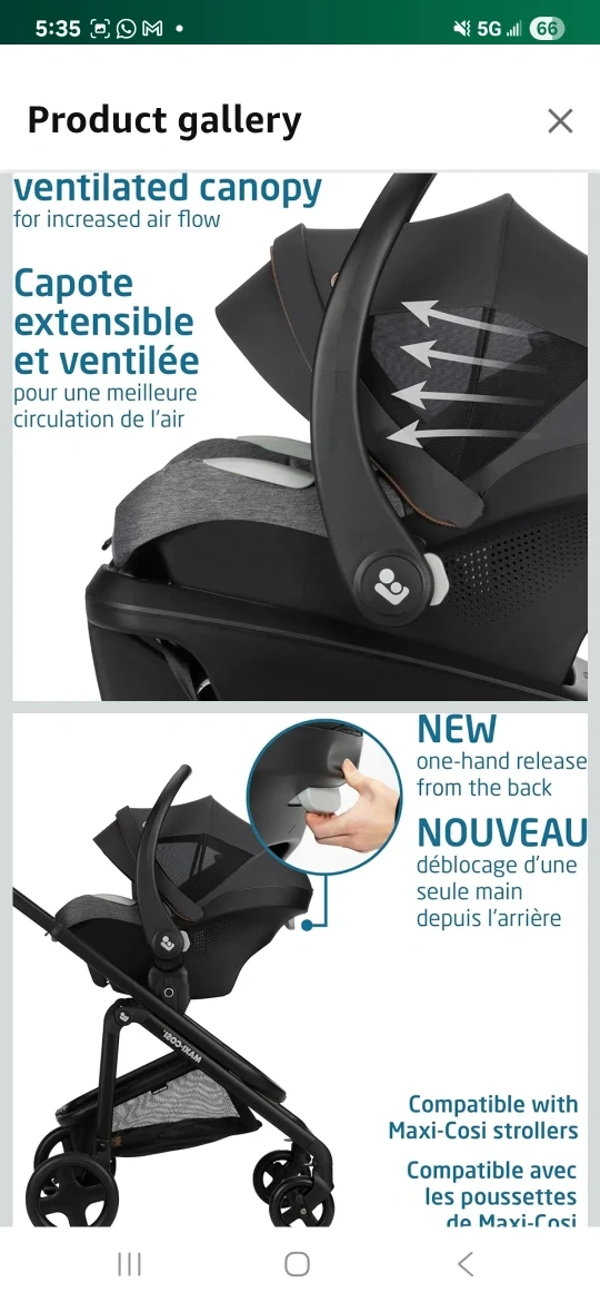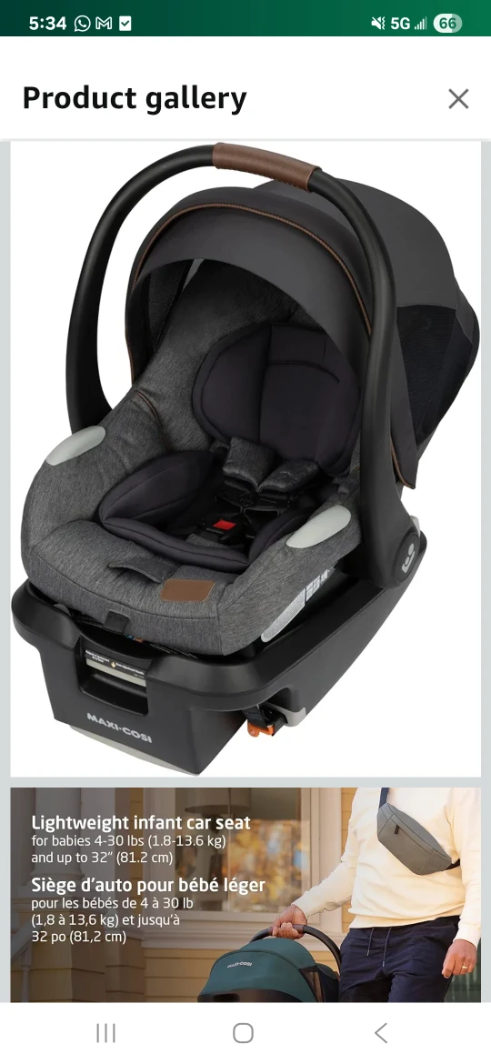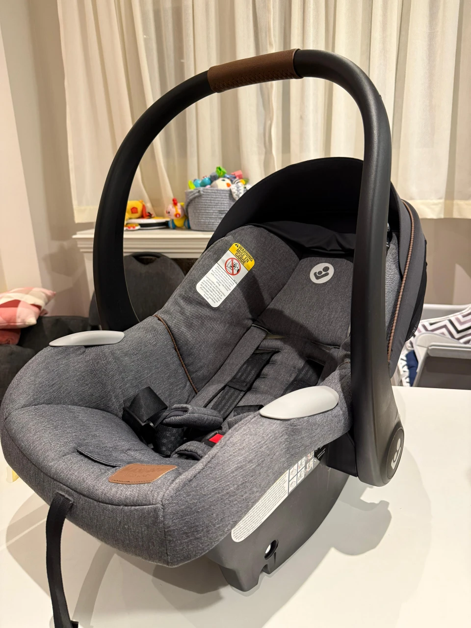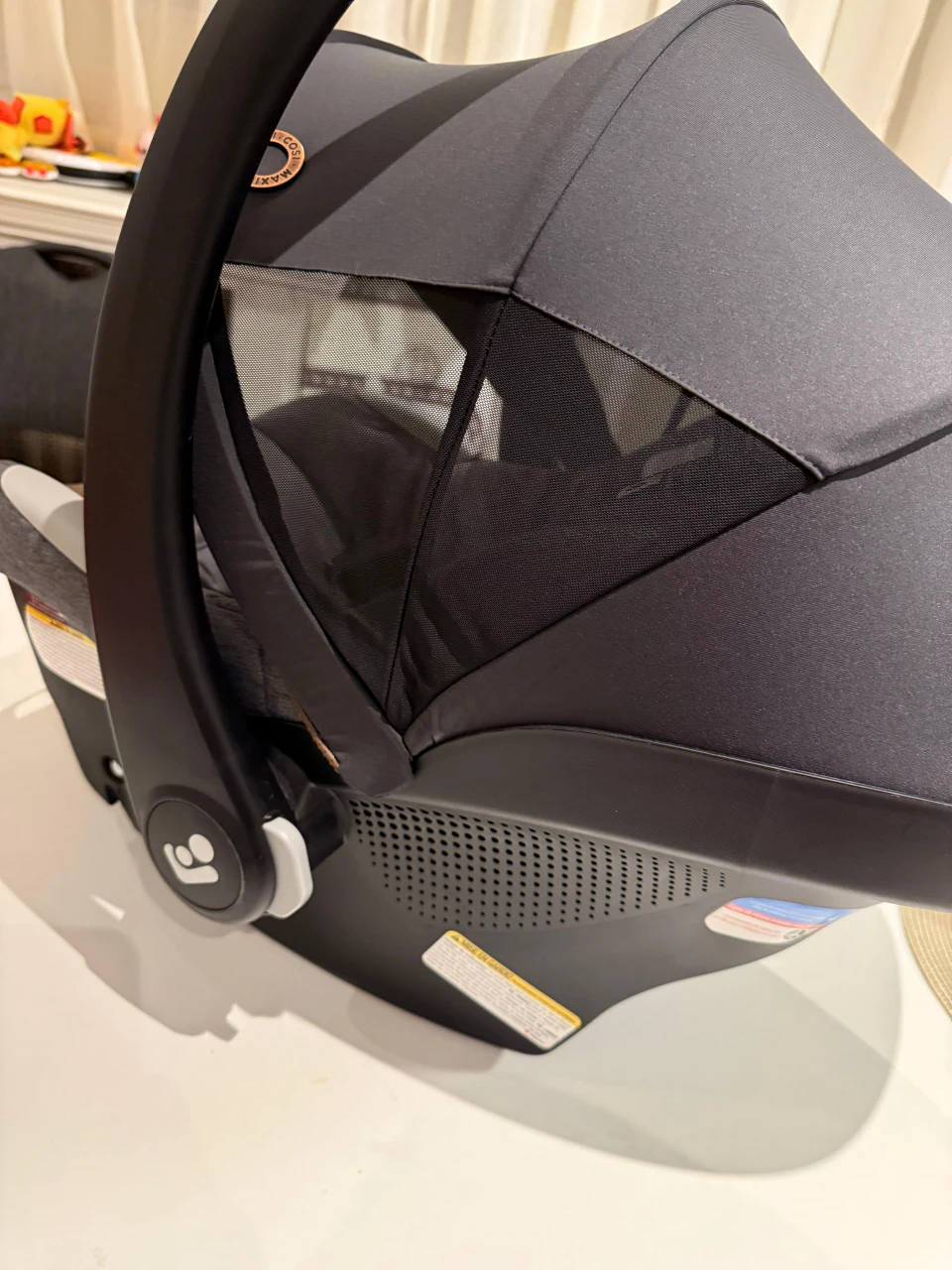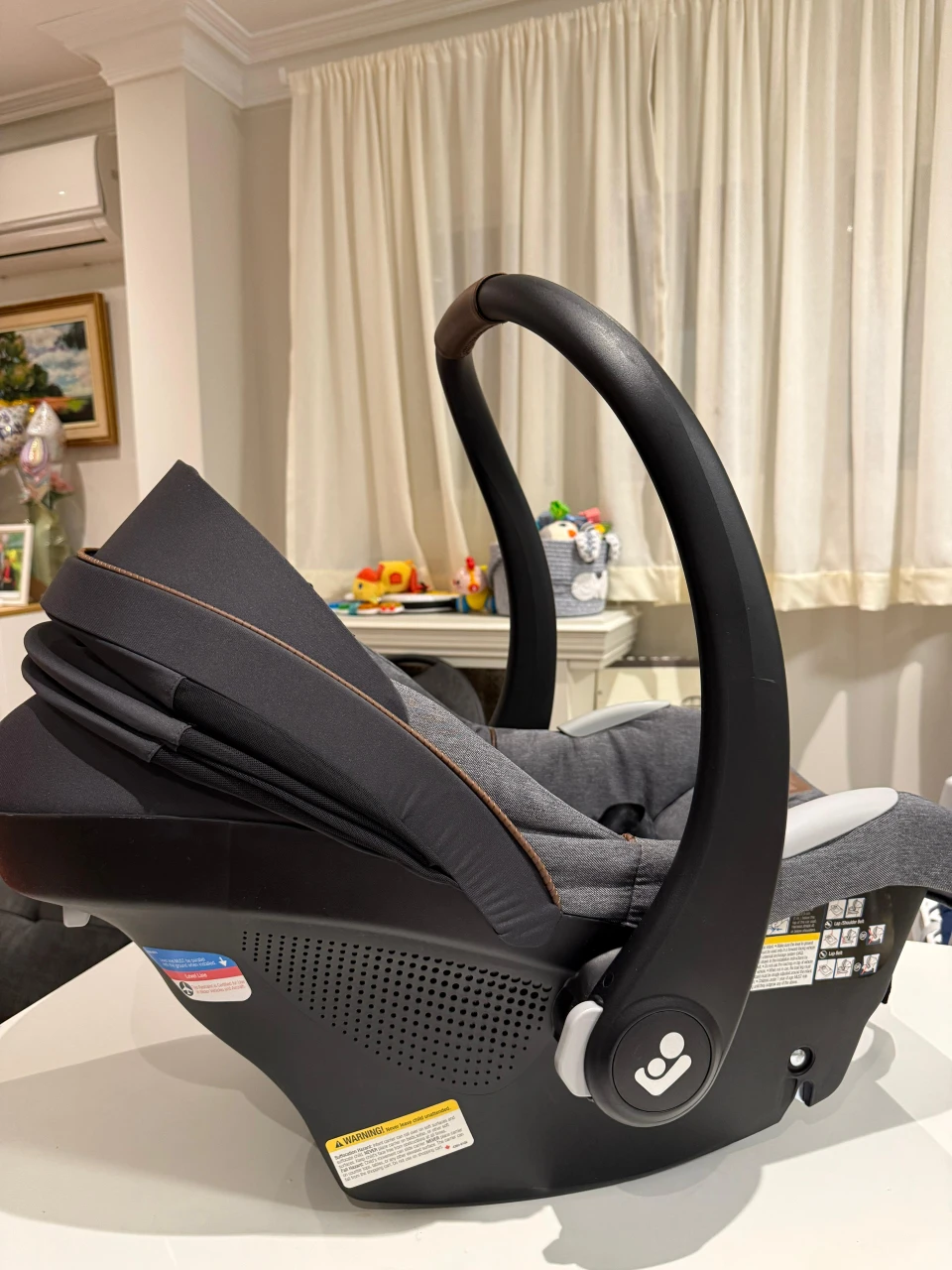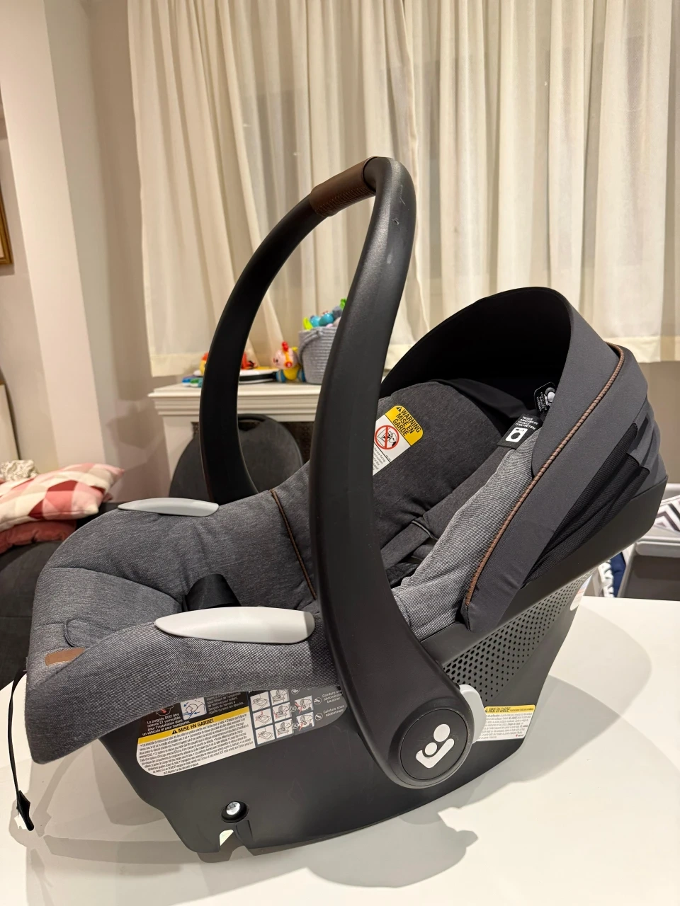 Selling a Maxi-Cosi lightweight infant car seat. It's suitable for babies 4-30 lb (1.8-13.6 kg). Condition is like new, pet free, smoke free and no stain
