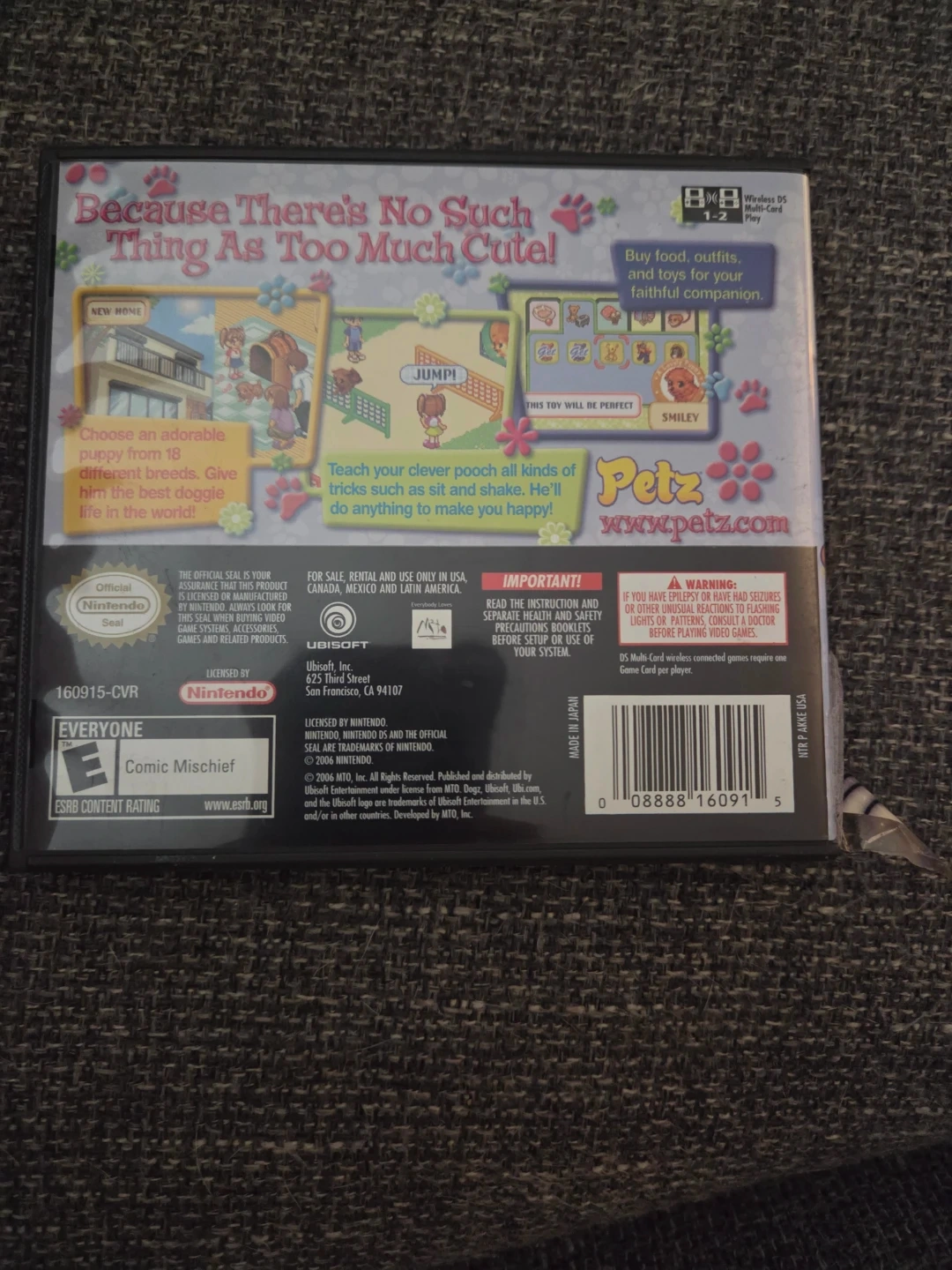 Selling the Dogz game for the Nintendo DS! It's in great condition and includes the game cartridge and case. Get ready for some adorable puppy fun!