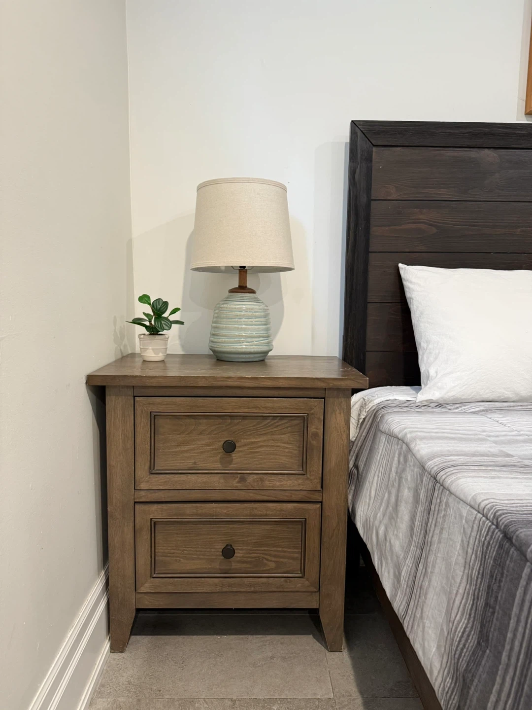 2 wooden nightstands