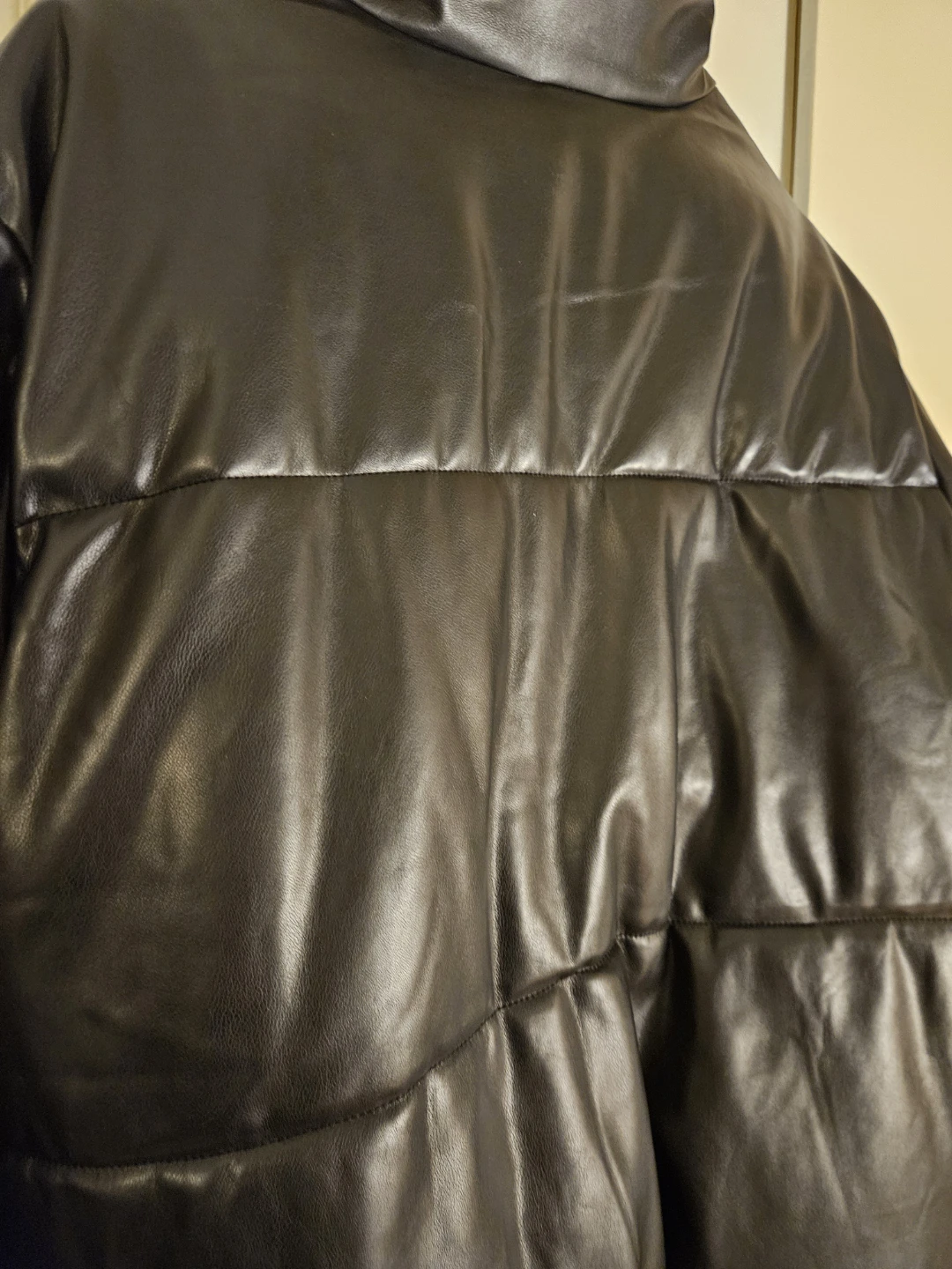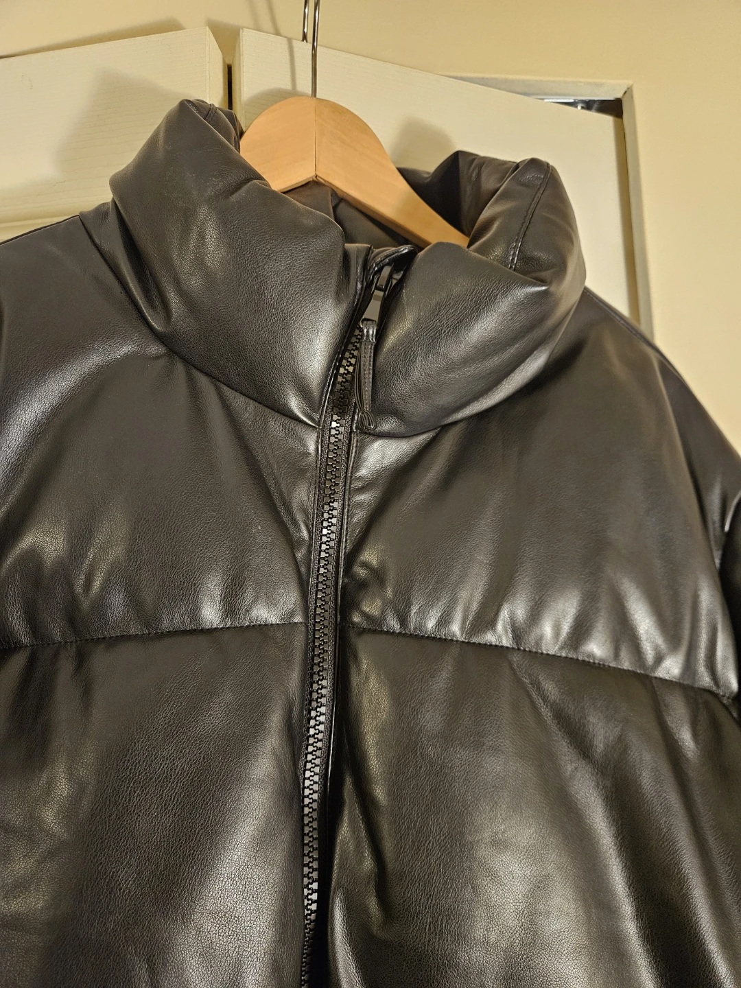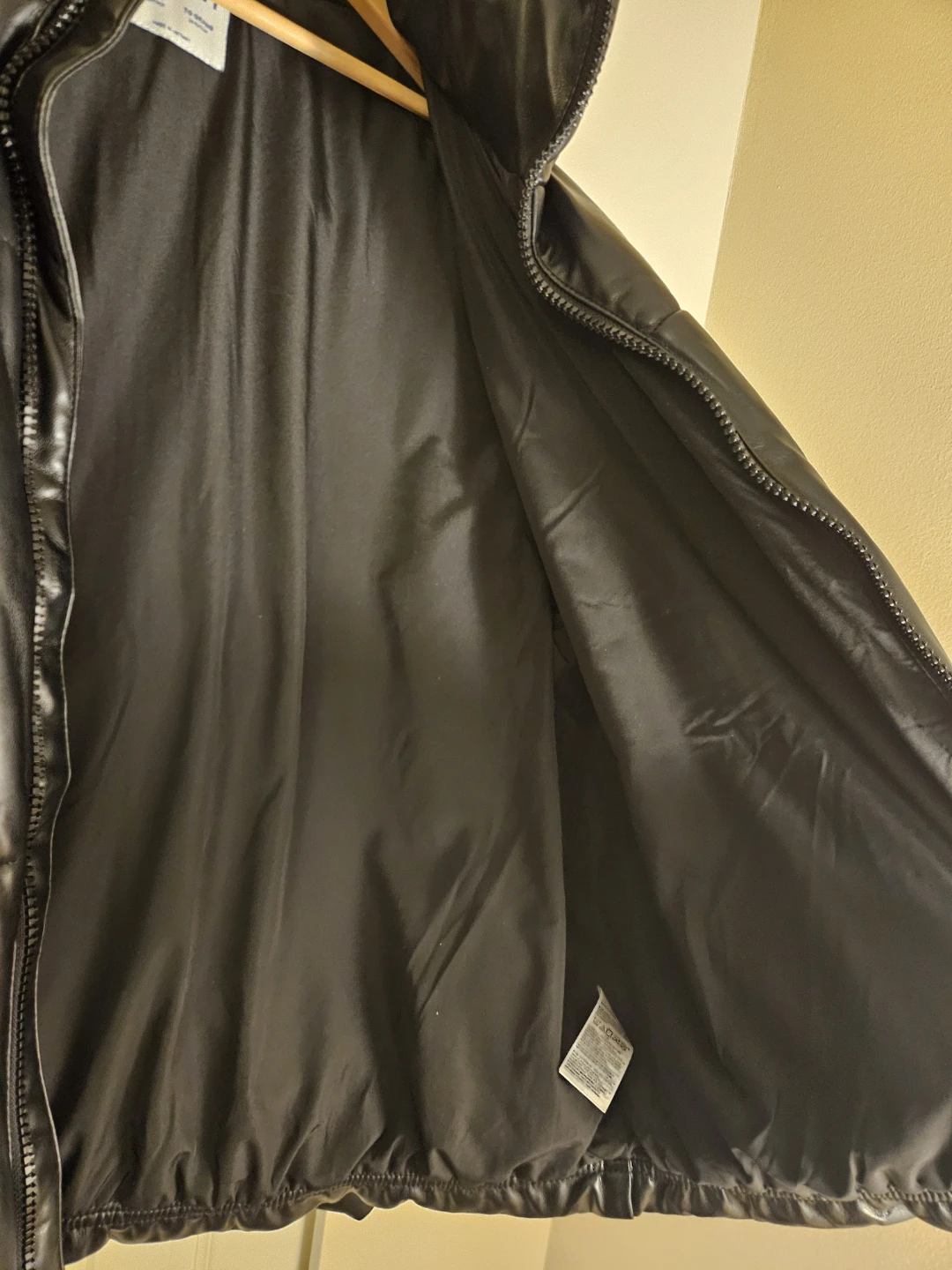 Selling a stylish Old Navy puffer jacket in XL Tall size. It's made of faux leather and is in great condition. Perfect for adding a bit of edge to your winter wardrobe!
