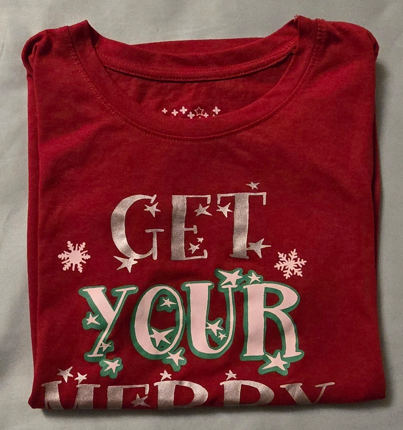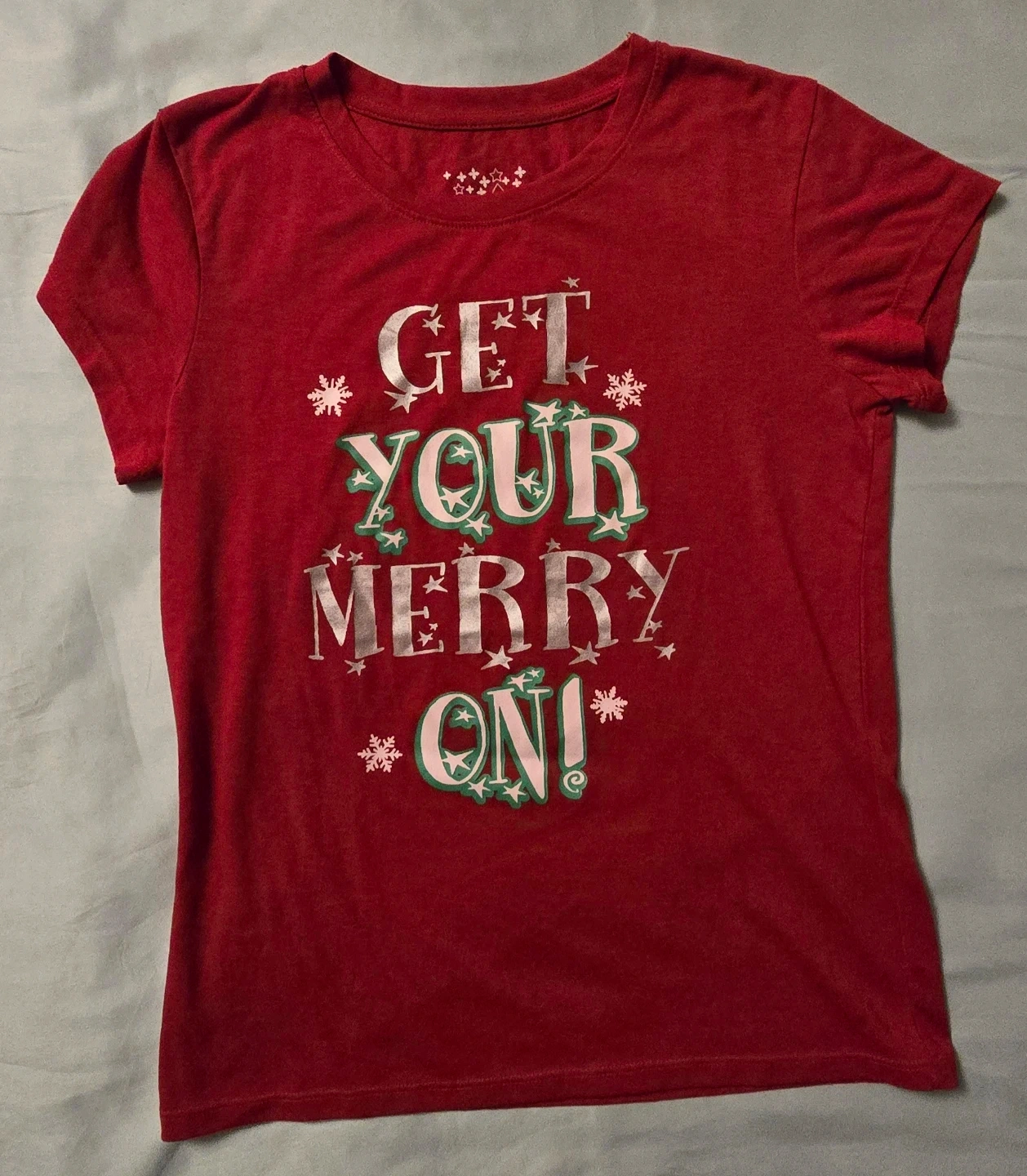 Cute red Christmas T-shirt in size small womens! The shirt says "Get Your Merry On!"