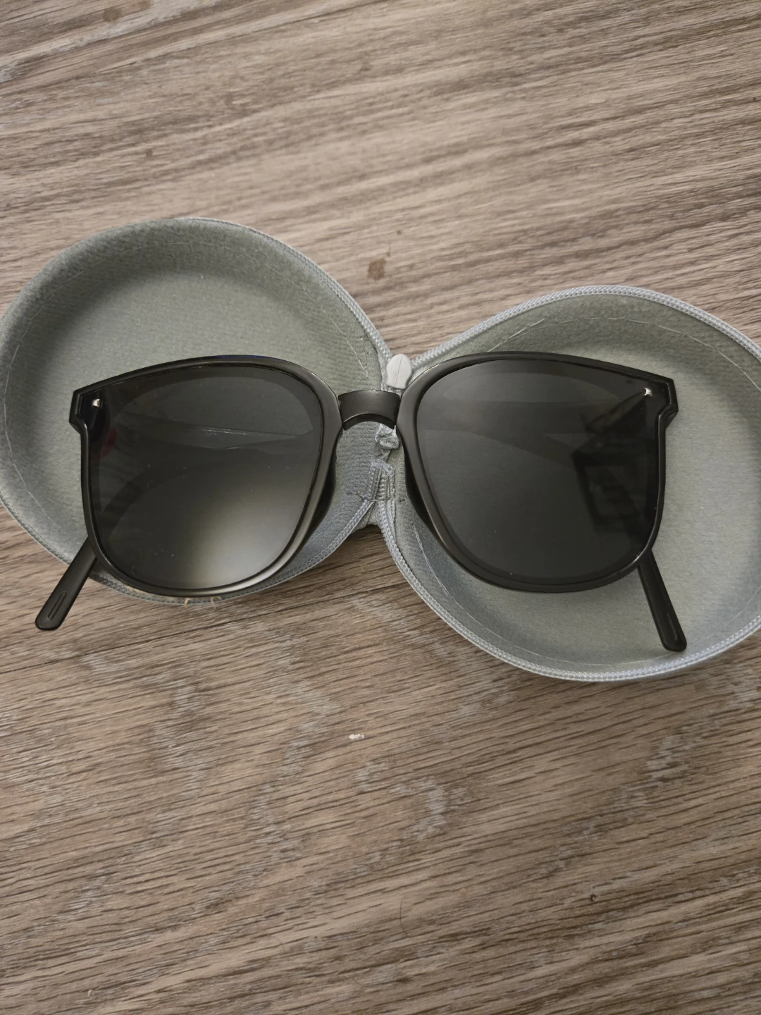 Check out these adorable foldable black sunglasses that come with their own handy case. Perfect for on-the-go style and easy storage. They're brand new and ready to wear!