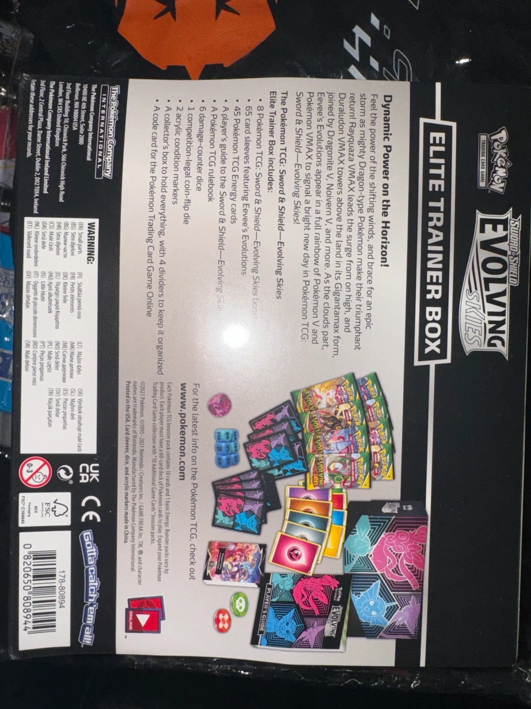 Selling a Pokemon TCG Sword & Shield Evolving Skies Elite Trainer Box! It includes: