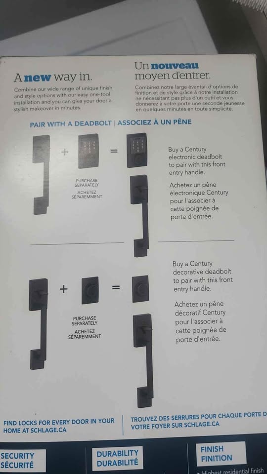 1 / 31 / 3Buy & SellSchlage door handle and elec lockSchlage door handle and elec lock$150All never used NEW its the long handle with the electric code dead bolt unlock with a personal code or your keyWHERE TO MEETCheck LocationView MapSELLERJBSurrey BC545 reviews1 chats·0 favorites·14 viewsSEND CHAT TO SELLERHi JB! I’m interested in your listing.Hi JB! I’m interested in your listing.Get the Karrot app to chatSign In to chat