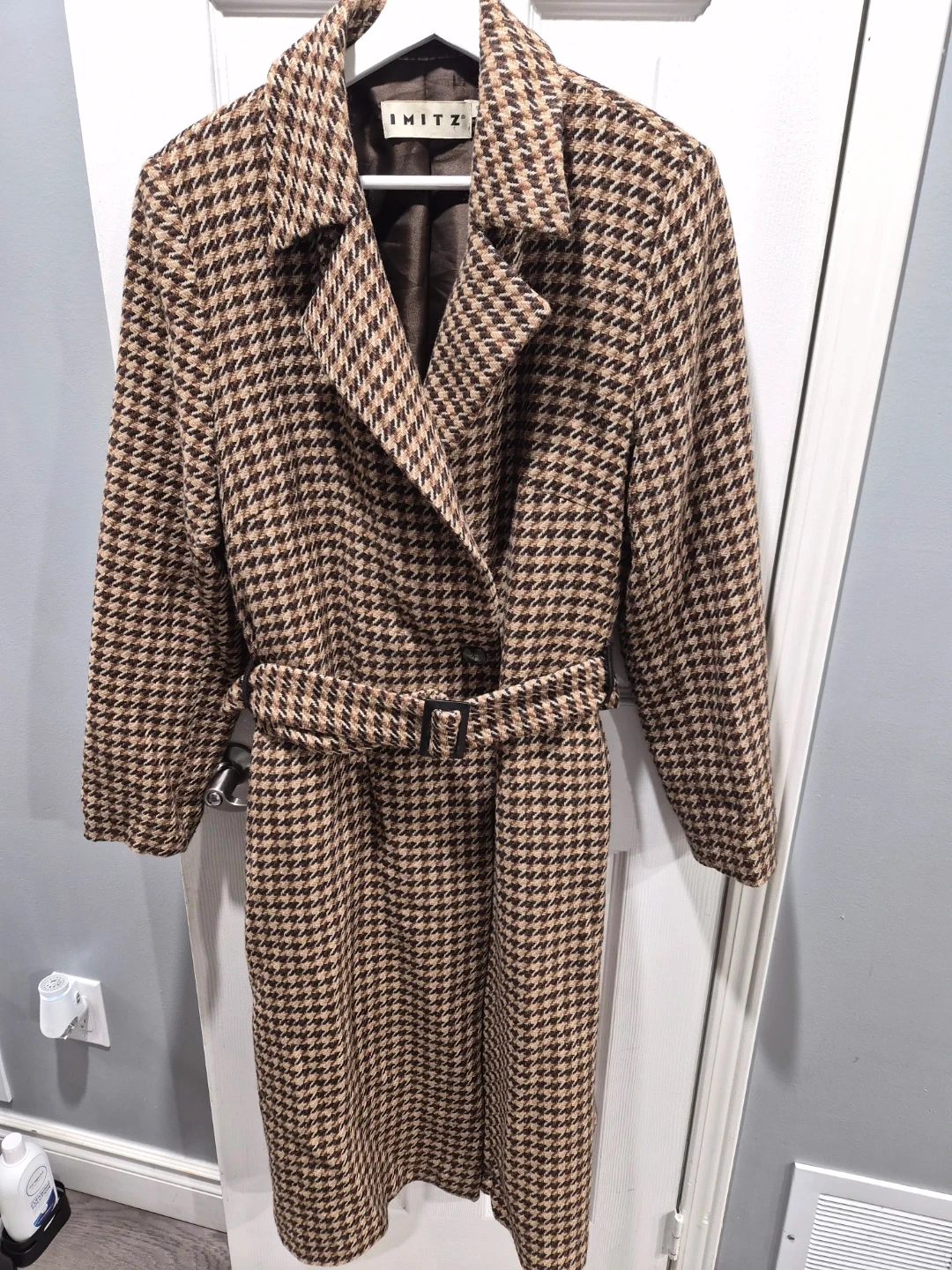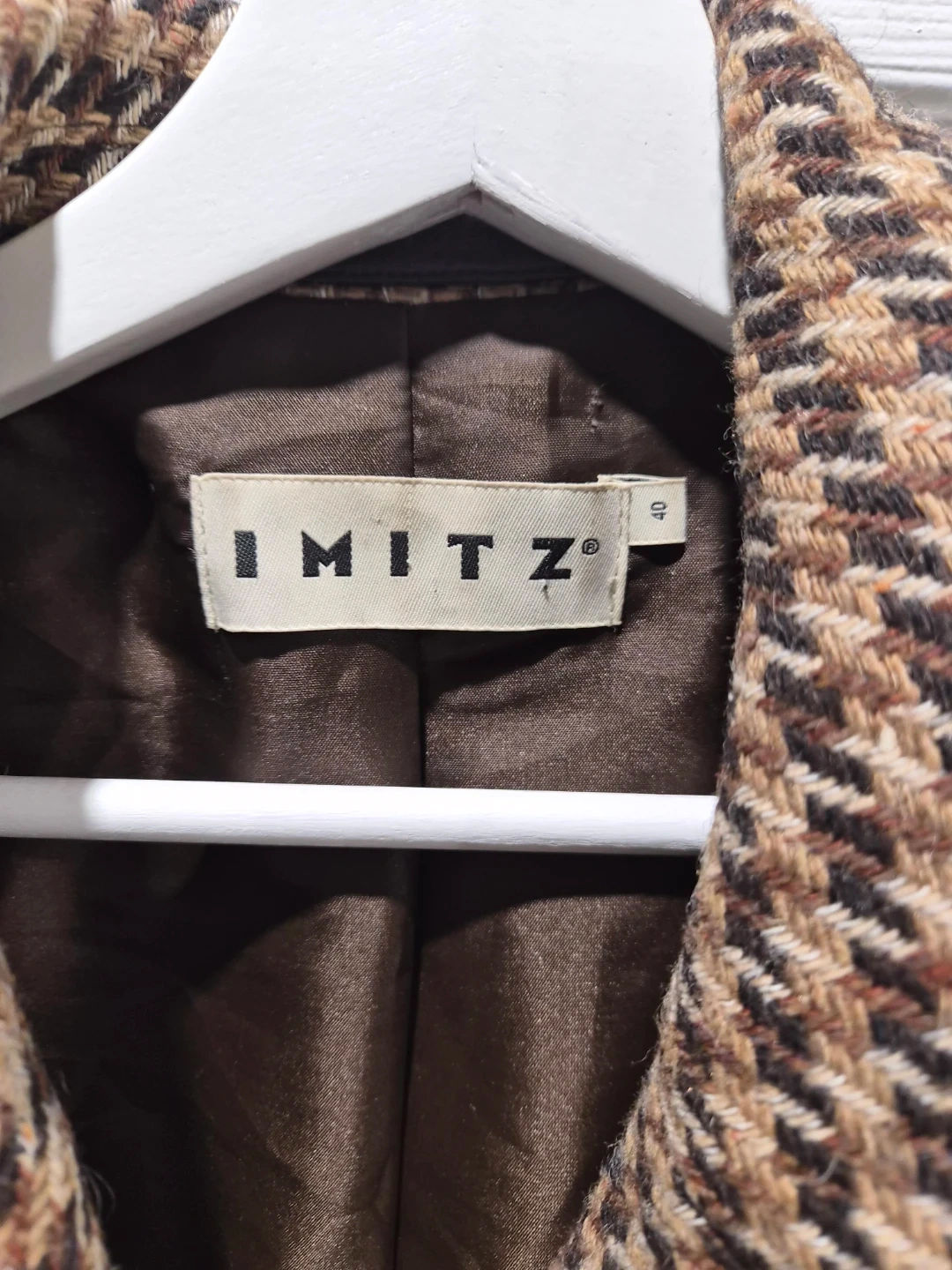 Here's a stylish Imitz coat in a classic houndstooth pattern! It's a wool blend and size 40. Perfect for adding a touch of sophistication to your wardrobe