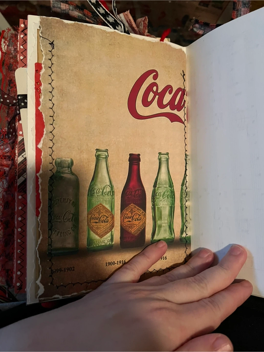 Check out this unique Coca-Cola themed scrapbook! It's got a fun, vintage vibe with lots of red, black, and white details. Perfect for anyone who loves Coca-Cola or enjoys unique handmade items