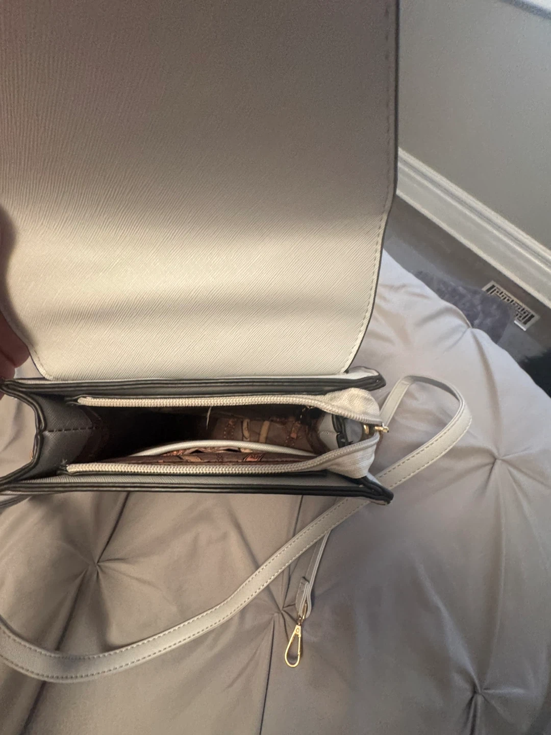 This is a cute baby blue satchel from winners. It has a gold-tone top handle and a detachable shoulder strap. It's in great condition and ready for a new owner!