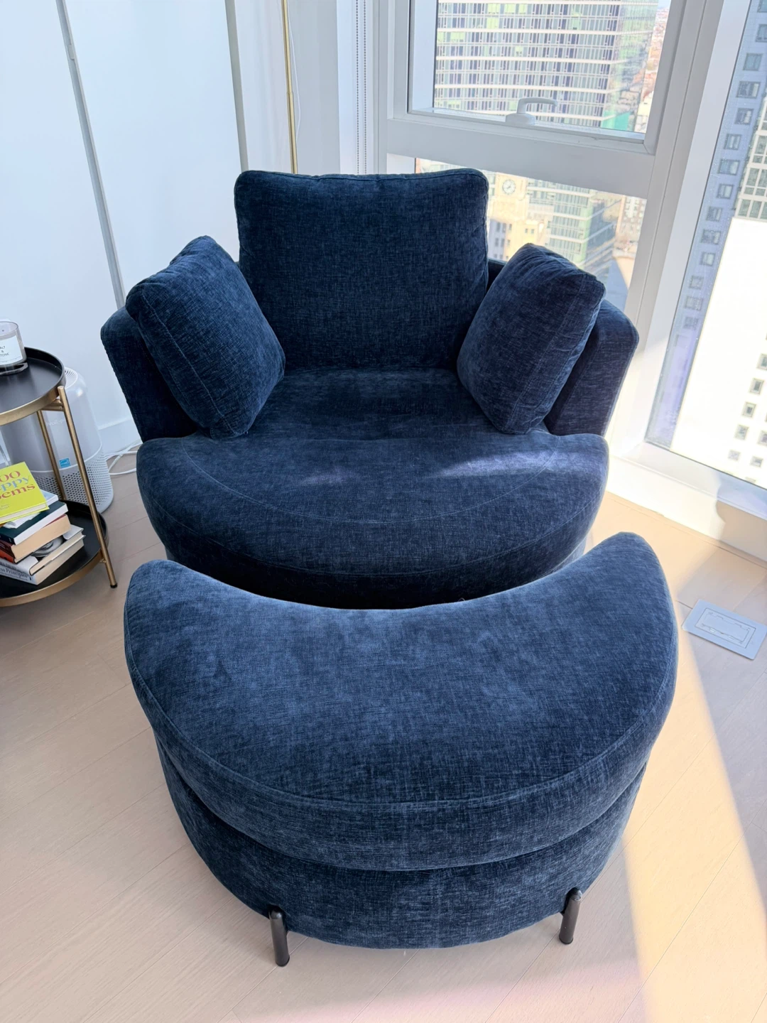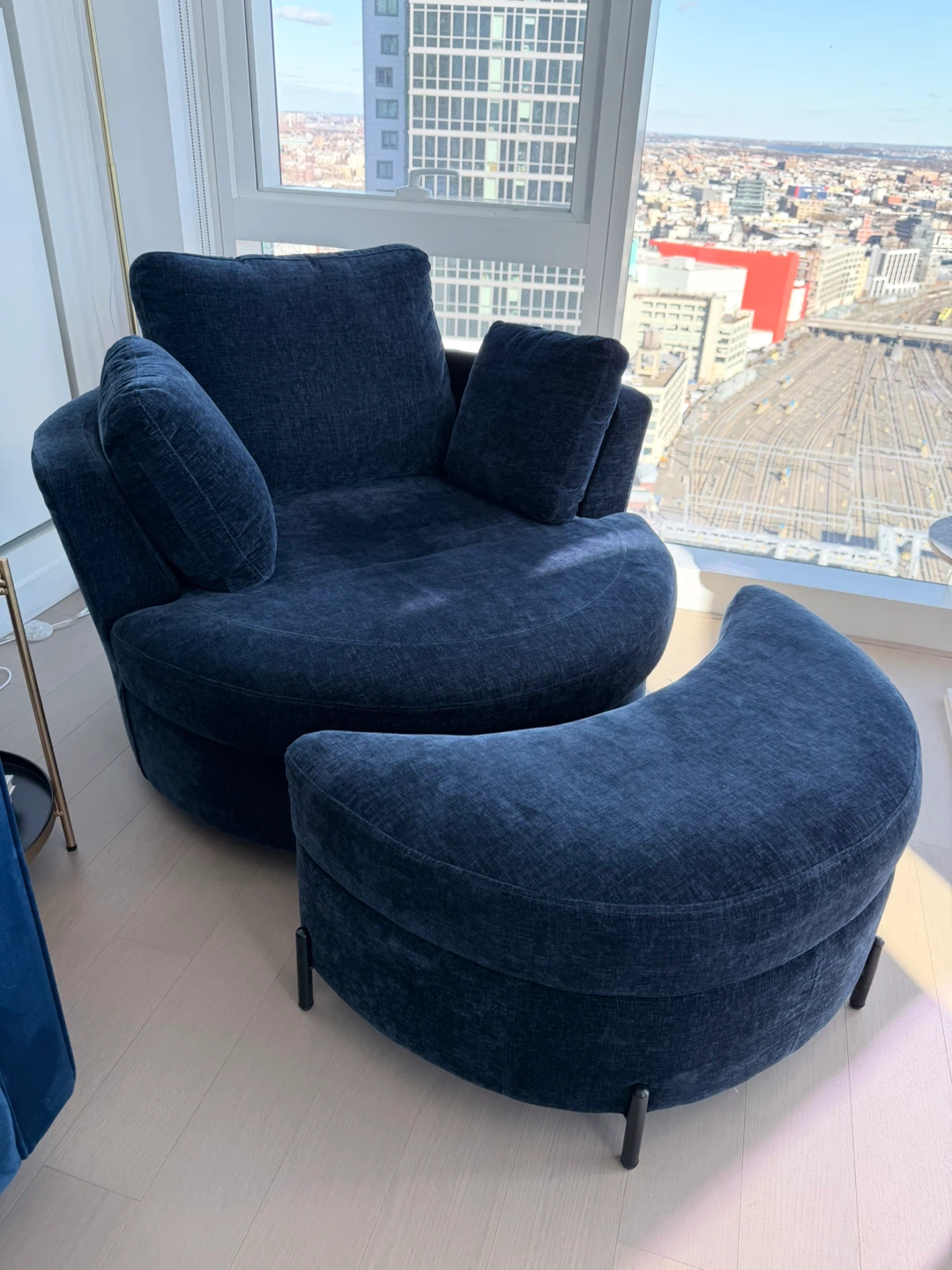 Originally bought from Wayfair for $936 in January 2024. Available after Jan 9th. Only selling because I am getting a larger couch and unfortunately will no longer have the space for this as well. Super comfortable - great for lounging. Ottoman has storage. Great condition, no stains or rips.