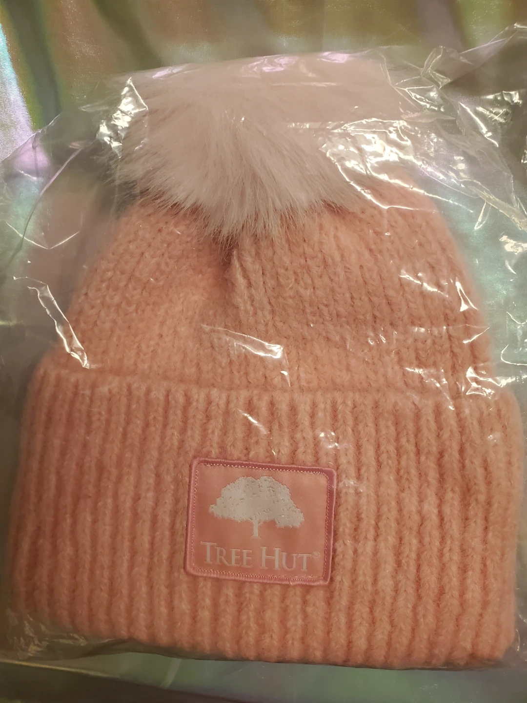 I'm selling a brand new Tree Hut pink knit beanie! It has a cute pom pom on top. The material is soft and cozy, perfect for keeping warm. It's in new excellent and has never been worn!