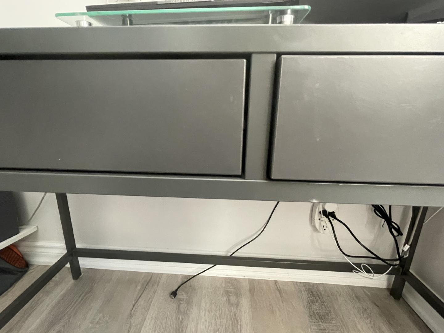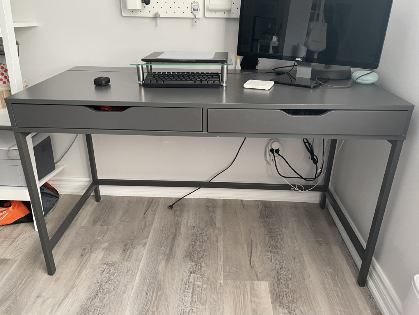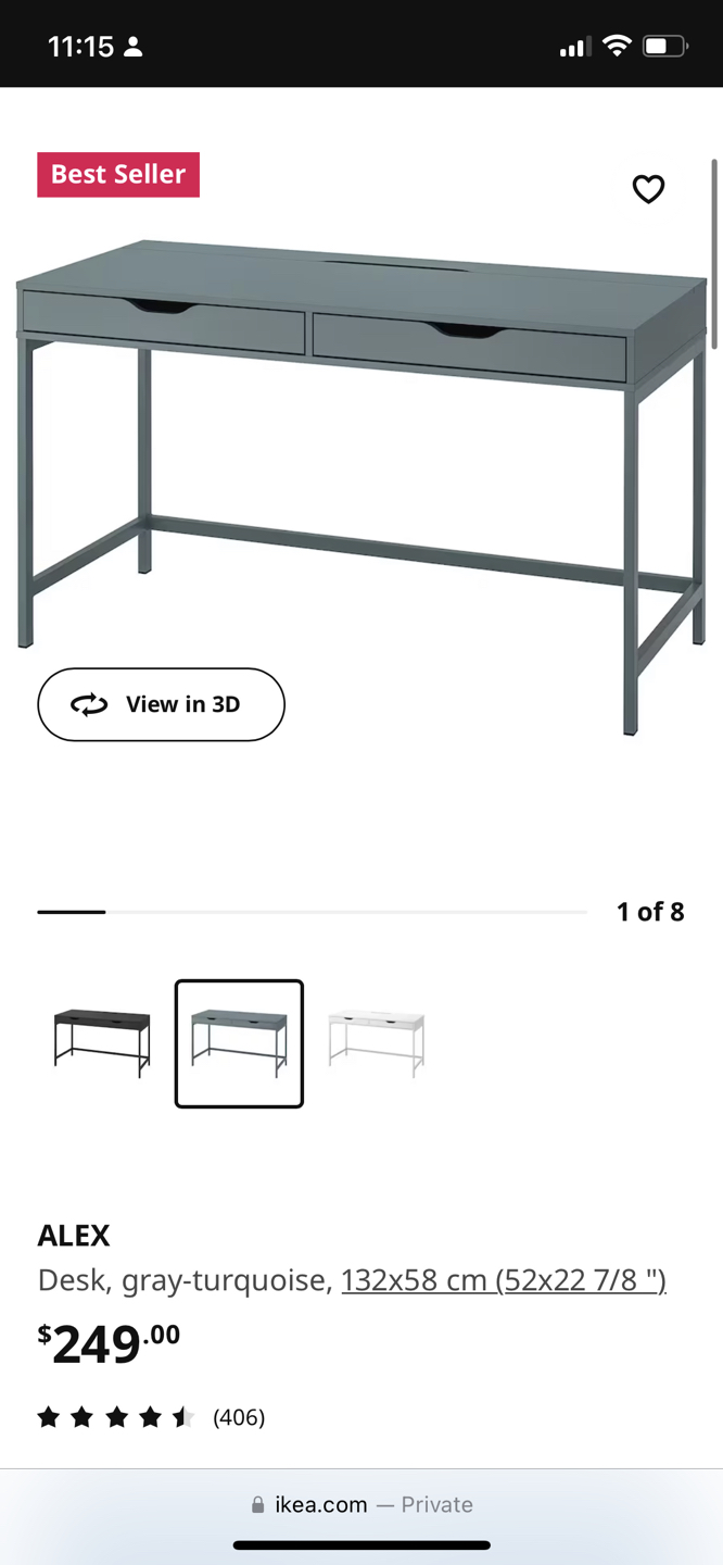 IKEA Alex Desk in Slate Grey (colour no longer available in store). Has a compartment for cable management. Retails for $250+tax. Good condition overall, but has a few small scratches as seen in the photos. Measurements in photos. Pick up near Windermere and Queensway. Will be disassembled into just the feet and table top, but will need help carrying the table top part down 2 flights of stairs (totally manageable). First come first serve, or etransfer to hold.