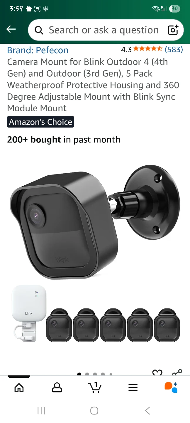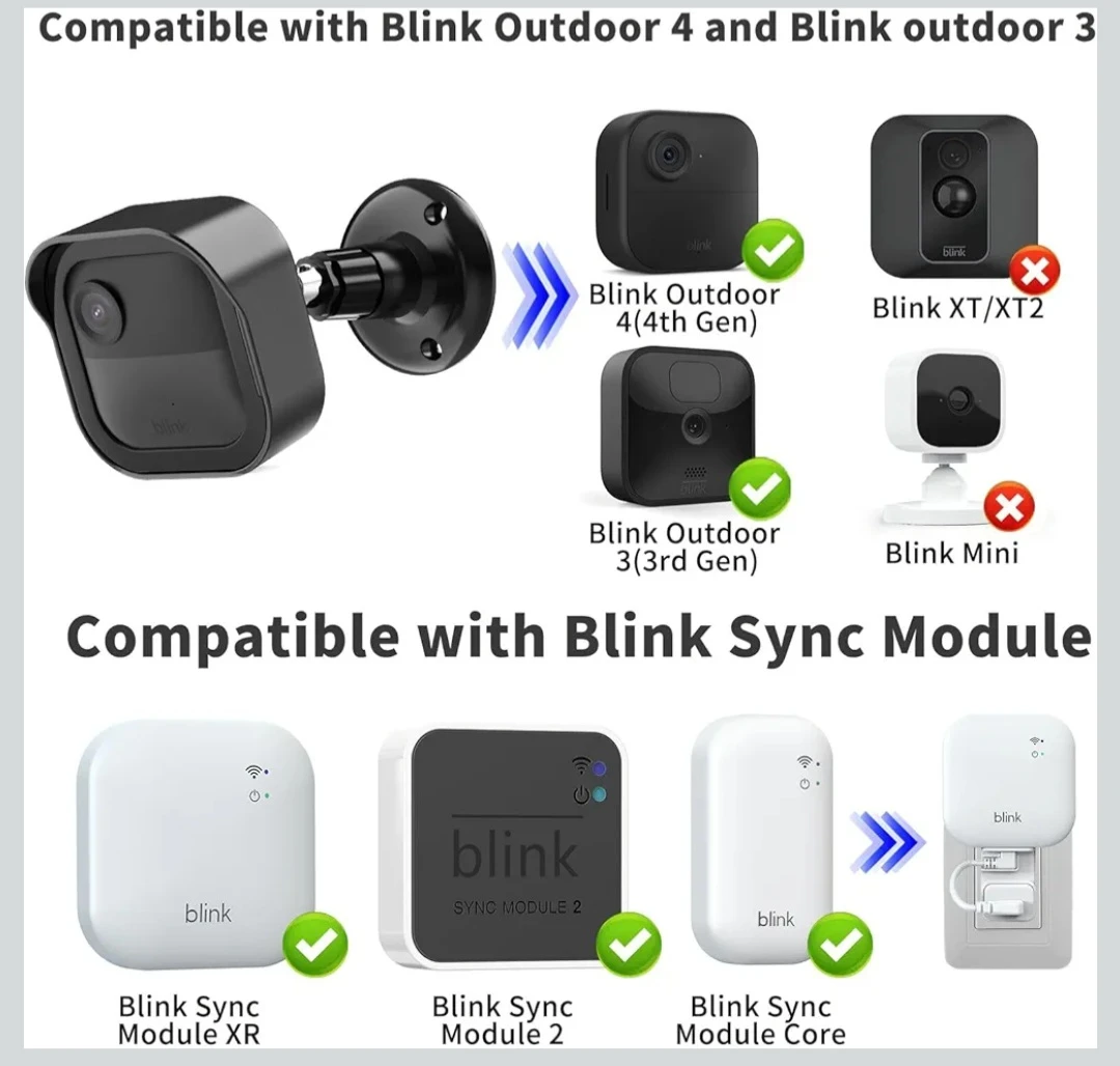 Selling a 5 PACK Pefecon camera mount, compatible with the Blink Outdoor 4 (4th Gen) and Outdoor (3rd Gen) cameras. It features a weatherproof protective housing and a 360-degree adjustable mount for your Blink Sync Module.
