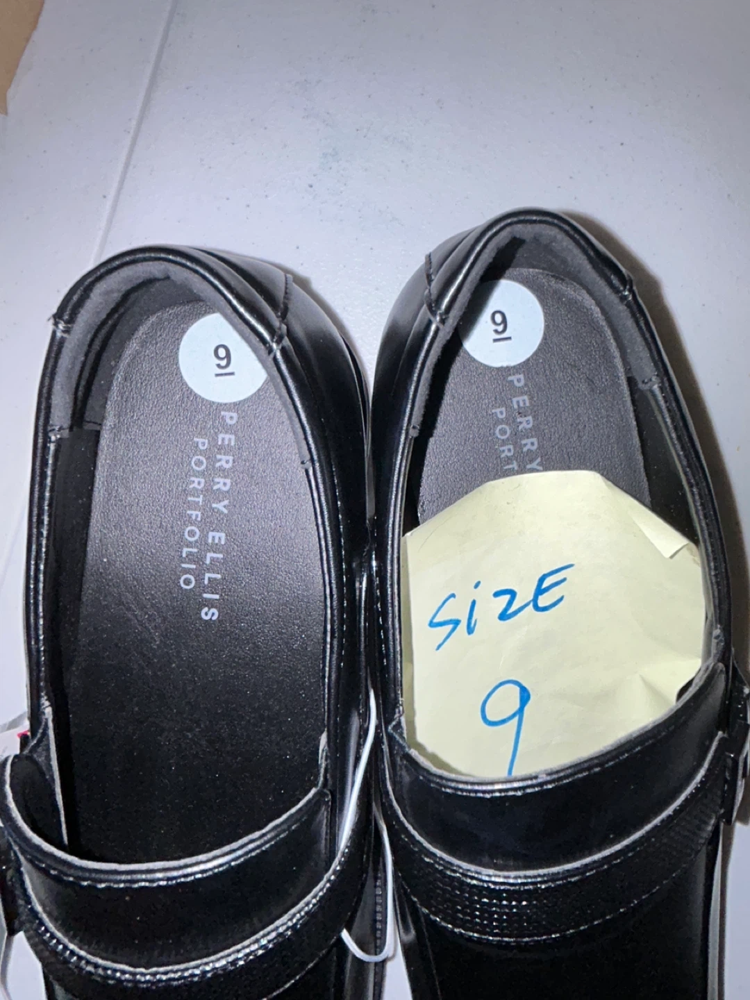 Selling a pair of Perry Ellis Portfolio black dress shoes in size 9. They are brand new .