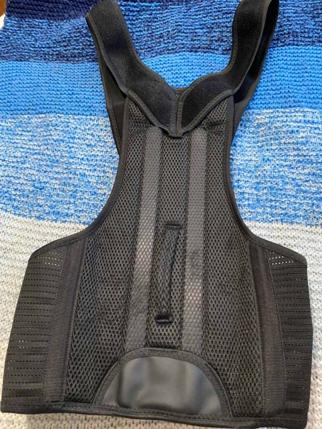 This posture corrector back brace is in great condition and ready to help you improve your posture! It's black and features a comfortable, breathable mesh design. It's designed to support your back and shoulders, helping to align your spine and reduce slouching. Perfect for wearing at home, at work, or during workouts!