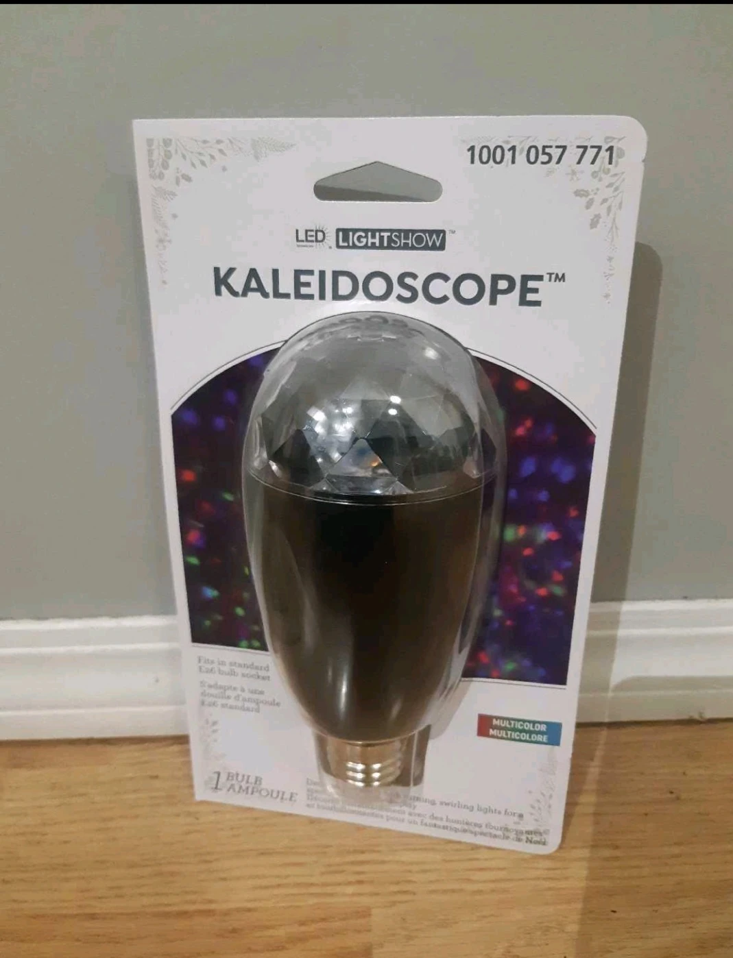 Add some fun to your space with this LED Lightshow Kaleidoscope bulb! It fits in a standard E26 bulb socket and creates a decorative display with turning, swirling lights. It's a multicolor bulb, perfect for a spectacular holiday display
