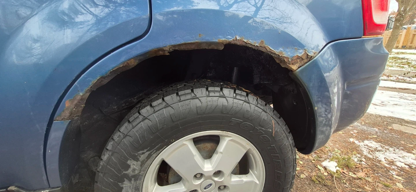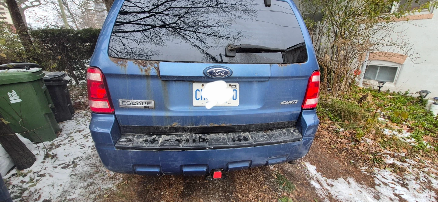 Selling a blue Ford Escape. It has some visible rust, especially around the wheel wells. condition. It's a 4WD model.Ford escape 09 v6 4x4 xlt still on road good running no issue with engine or transmission heater /ac radio lights all.work all season tires lotes of thred on , have some rust due to age & typical on these models